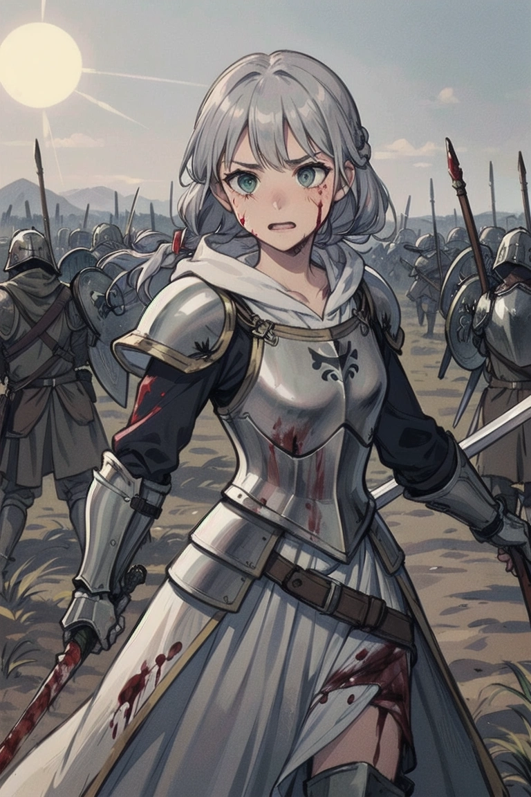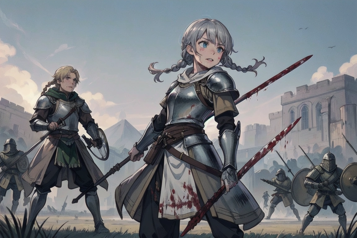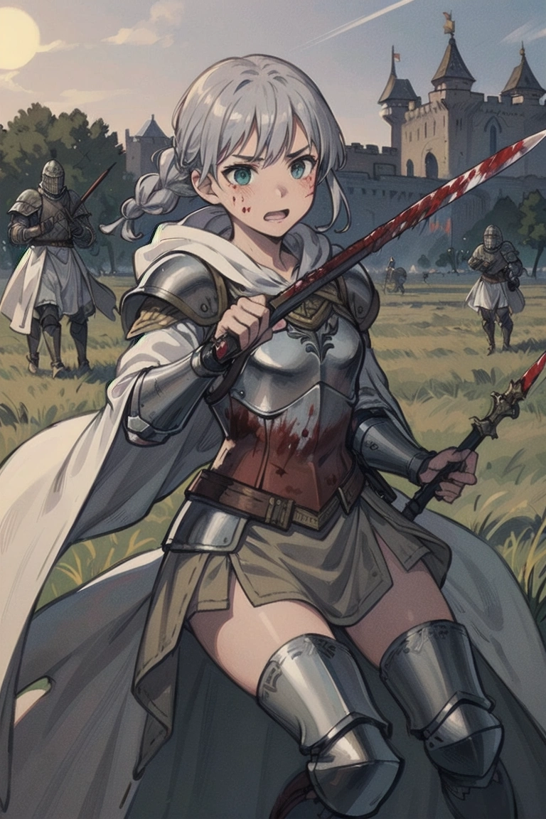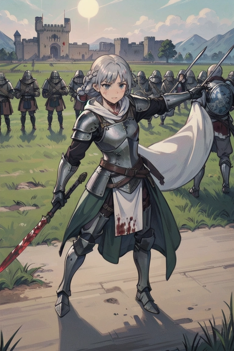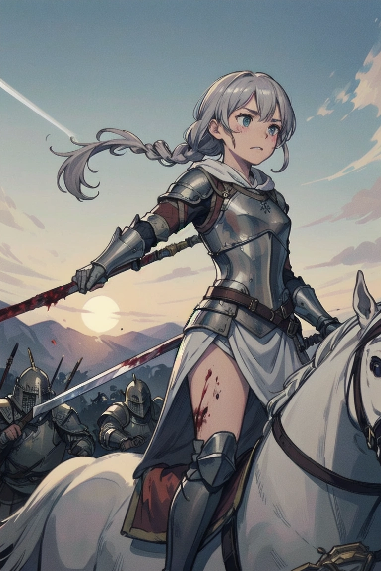 13th photo: Whether it\'s siege or defense, she stands in front on horseback (the princess\'s legs...I\'m sure she\'s sitting on it).