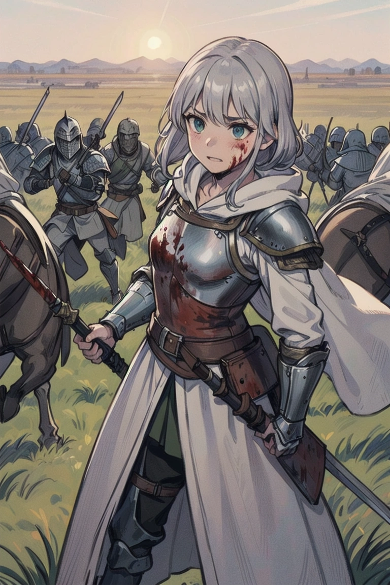 8th photo: Civil war in the castle. It doesn\'t feel like dawn, but something sparkles on the raised blade.