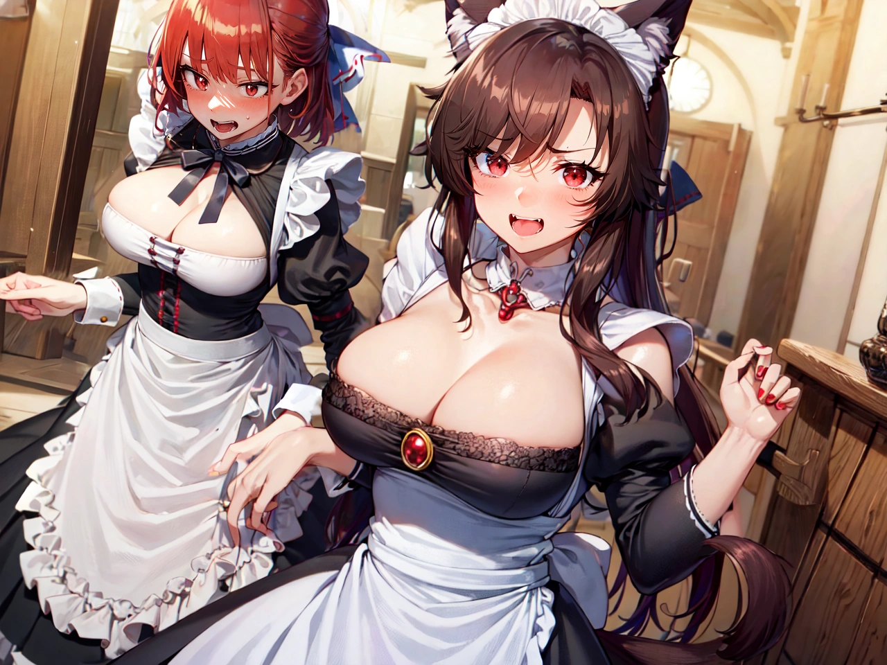 <lora:kagerou_v8:1>, (laughing:1.4), (maid costume:1.7), (upset:1.2)