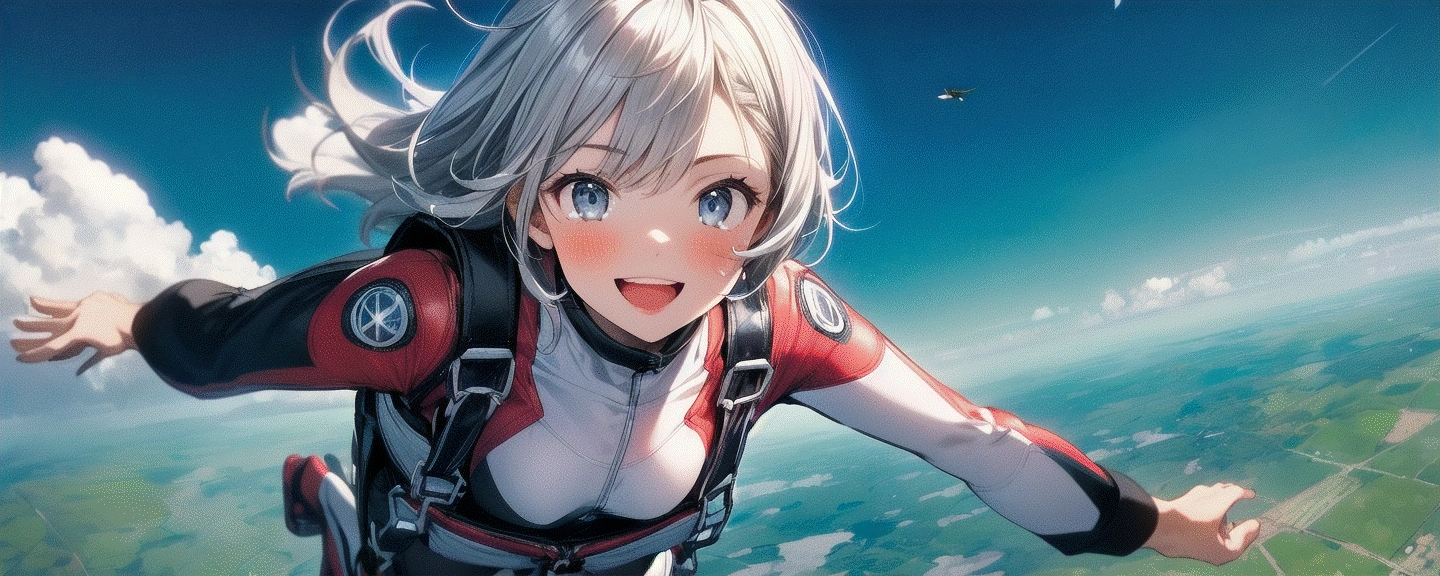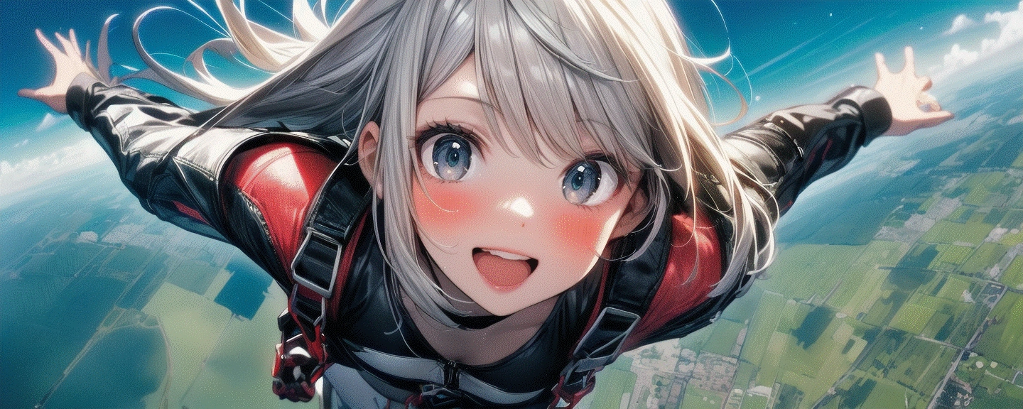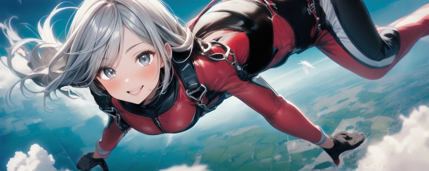 スカイダイビングならそれ用のプロンプトで作らないと駄目ですねぇ…「絶景用プロンプト」+スカイダイビング(呪文それだけ)では、臨場感が出ないですねw