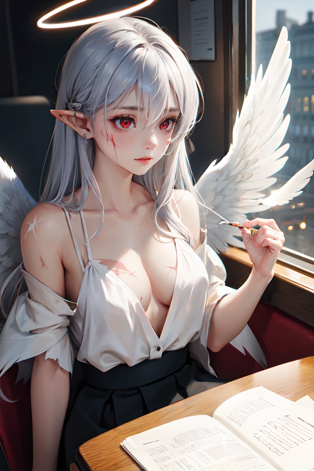 (masterpiece, best quality:1.3), illustration, (extream detailed), one girl, angel Descending