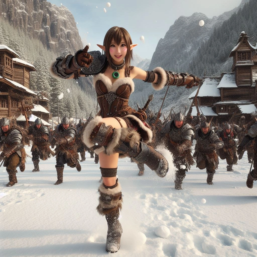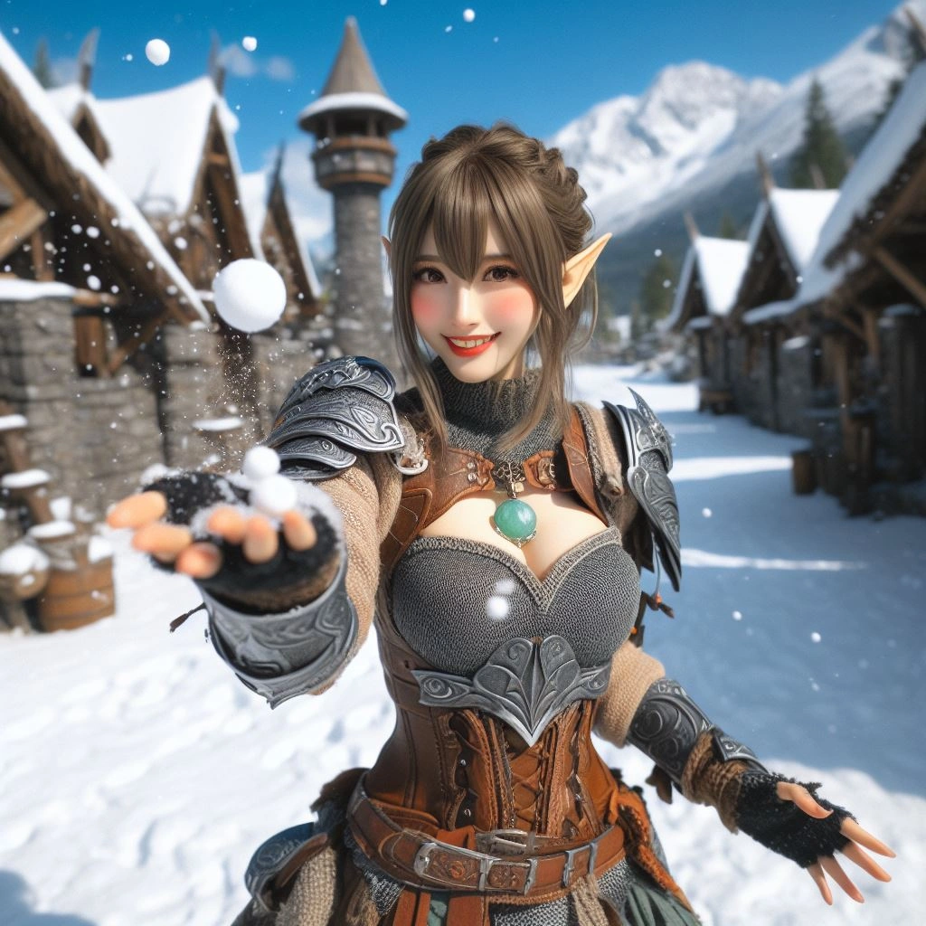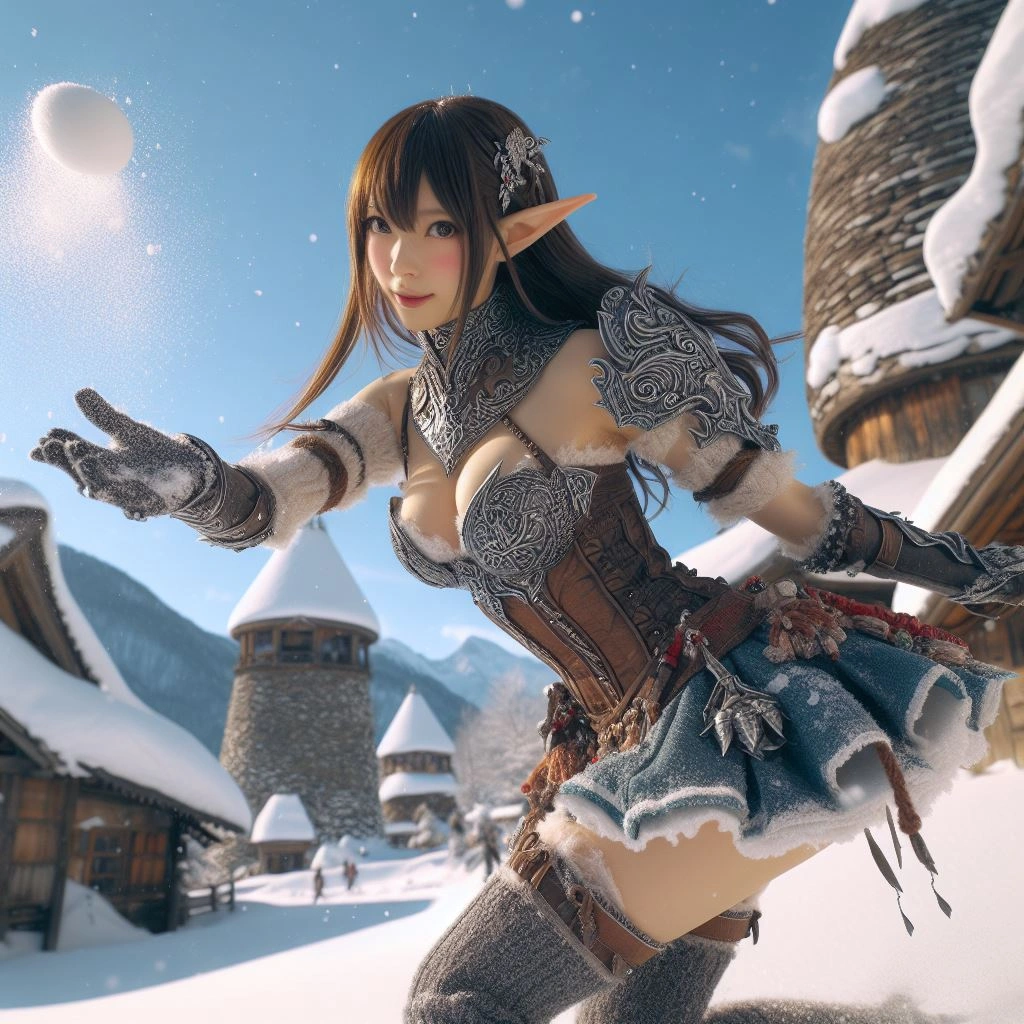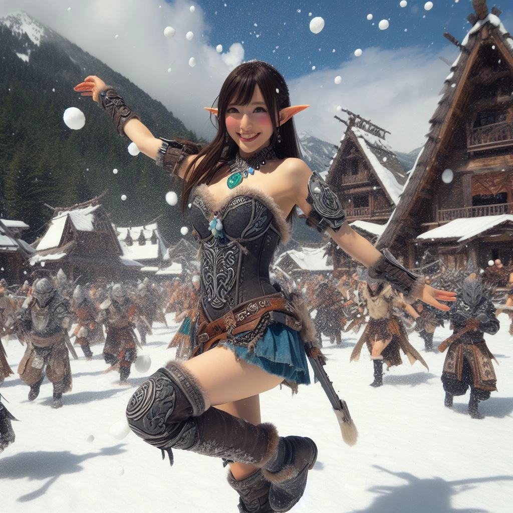 エルフの雪合戦