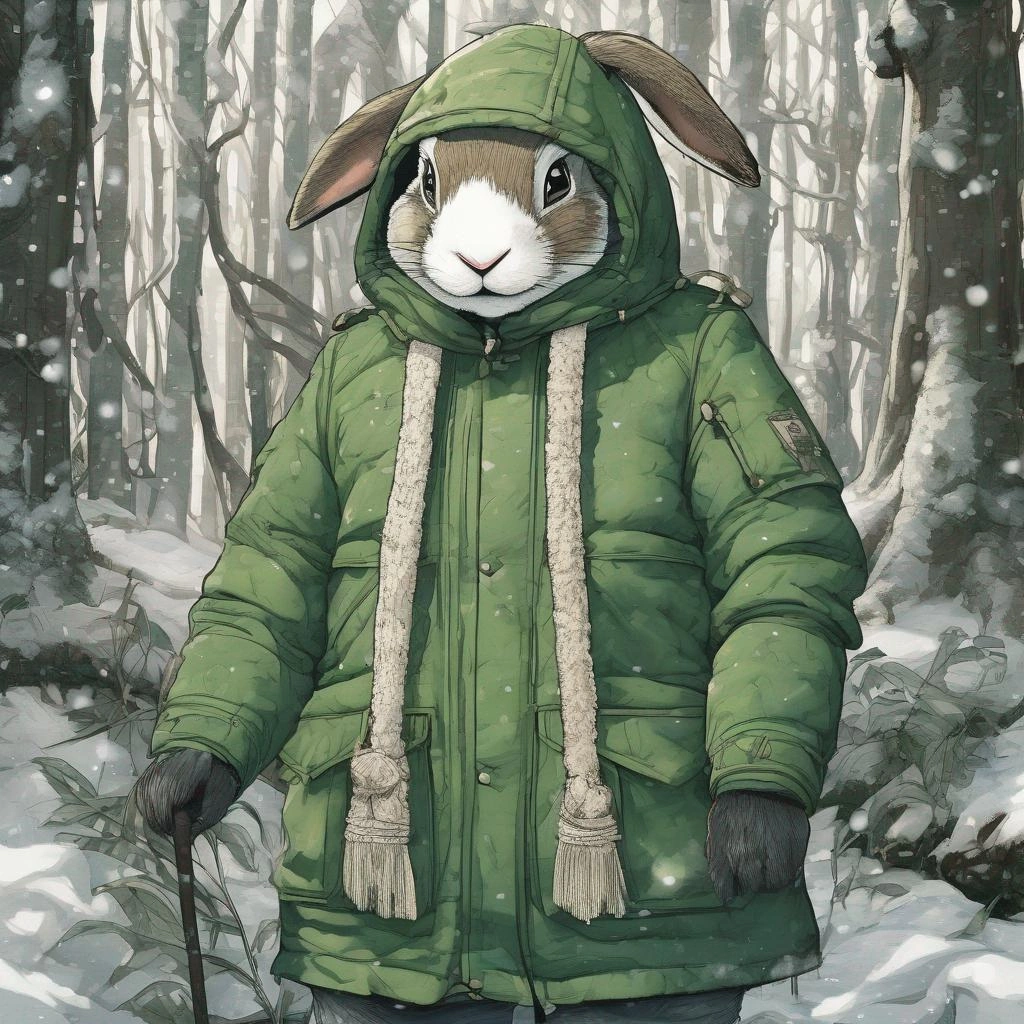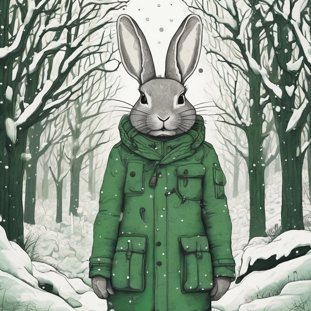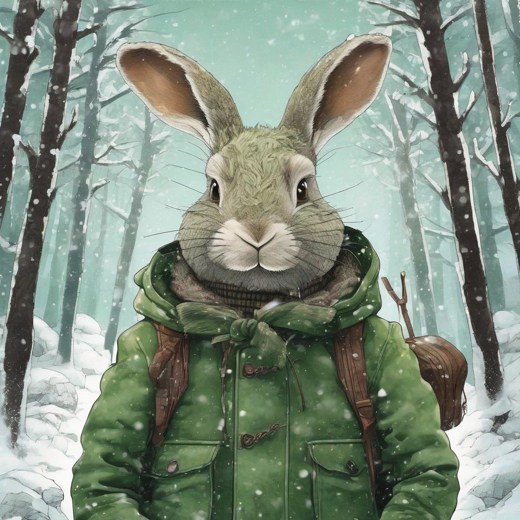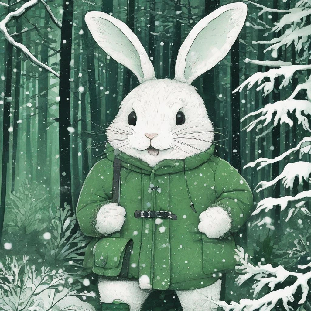冬の森で食べ物を探すうさぎ