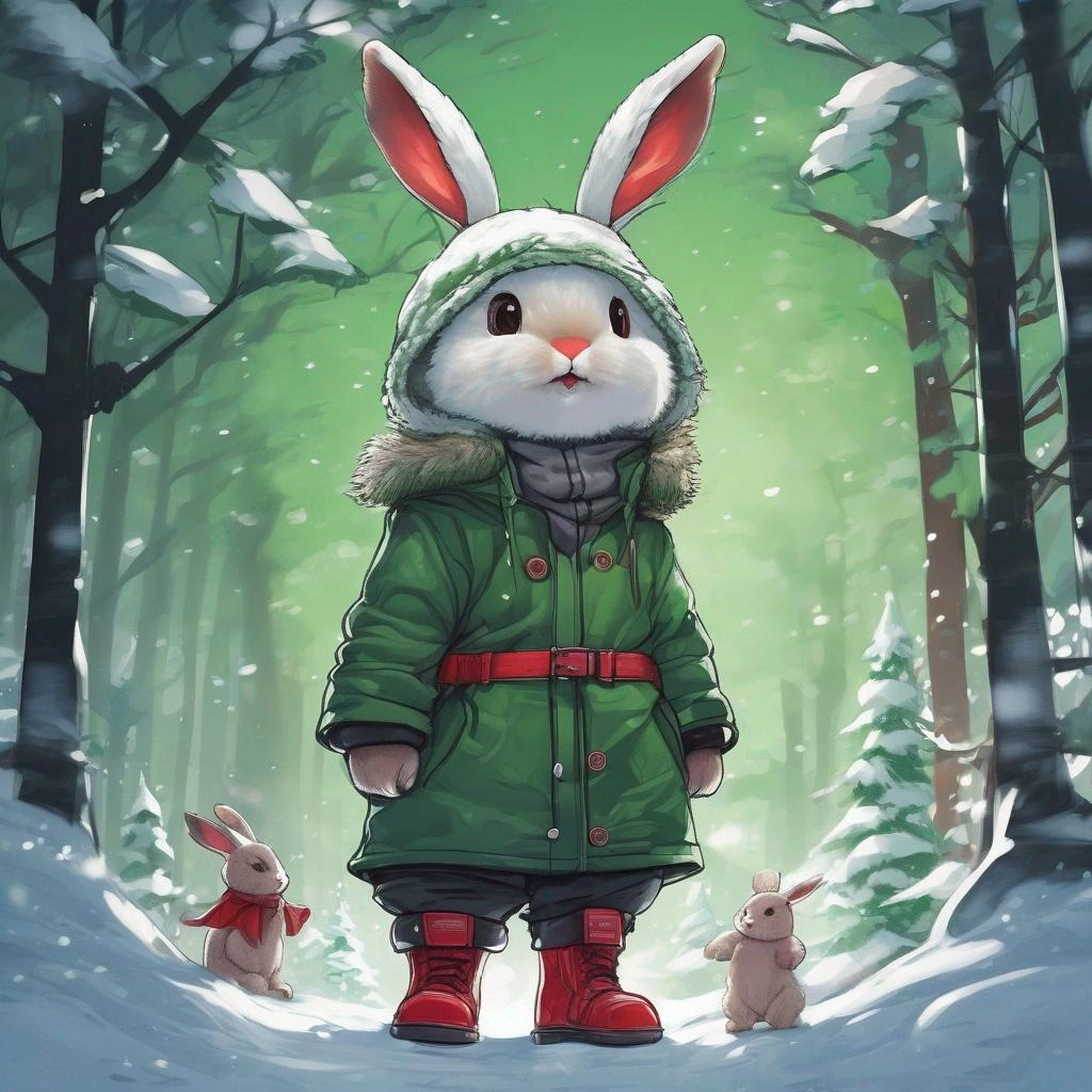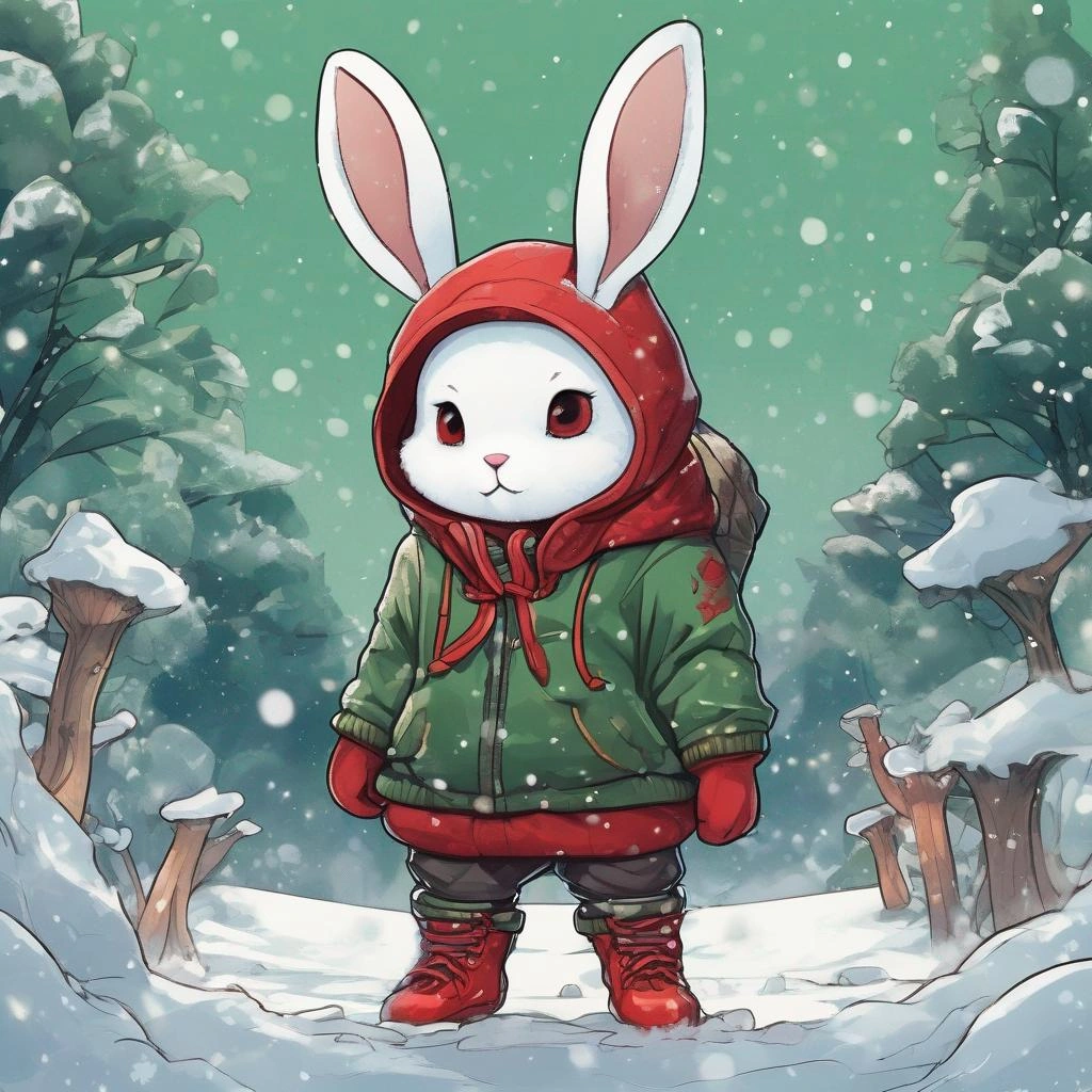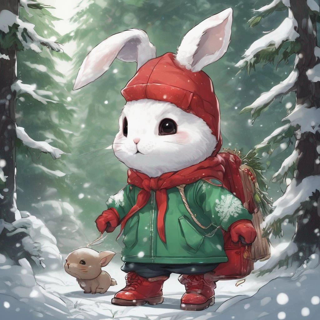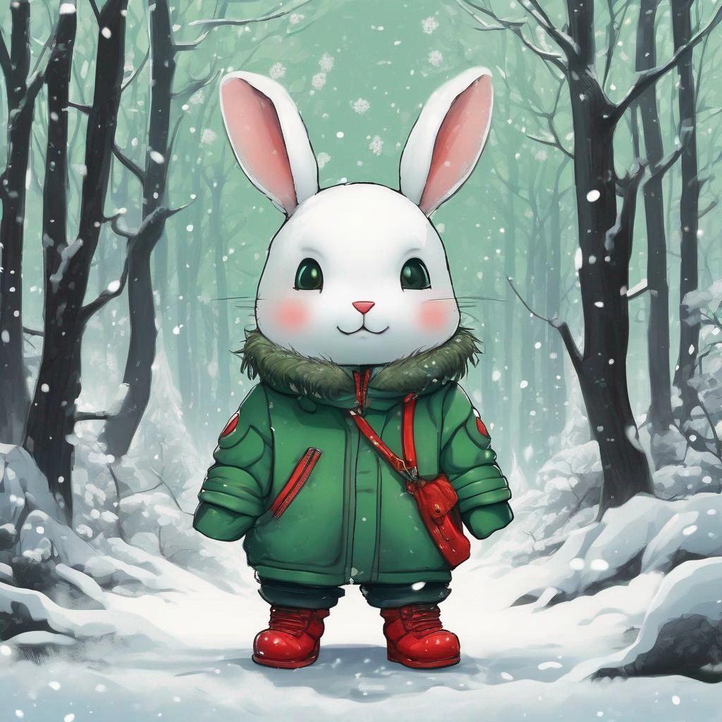 冬の森で食べ物を探すうさぎ
