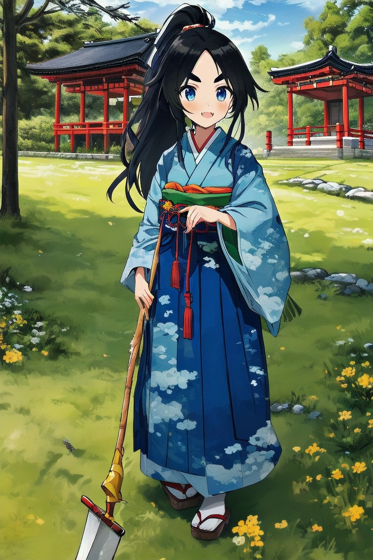 鎌で草を切る