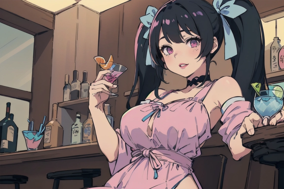 Risa @ Ramune flavored cocktail at a bar in Ginza