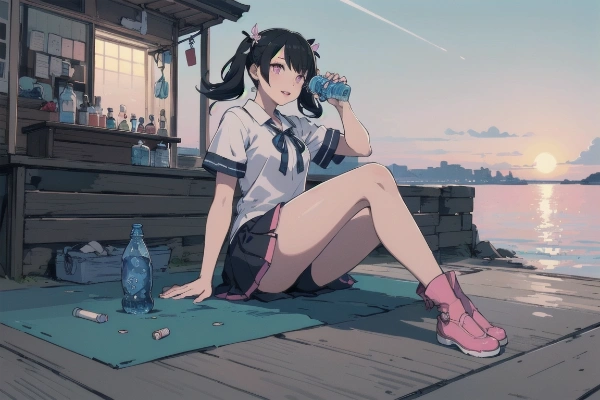 5. There is something (long glass on the left). Risa or Risa\'s expression and cut from below.