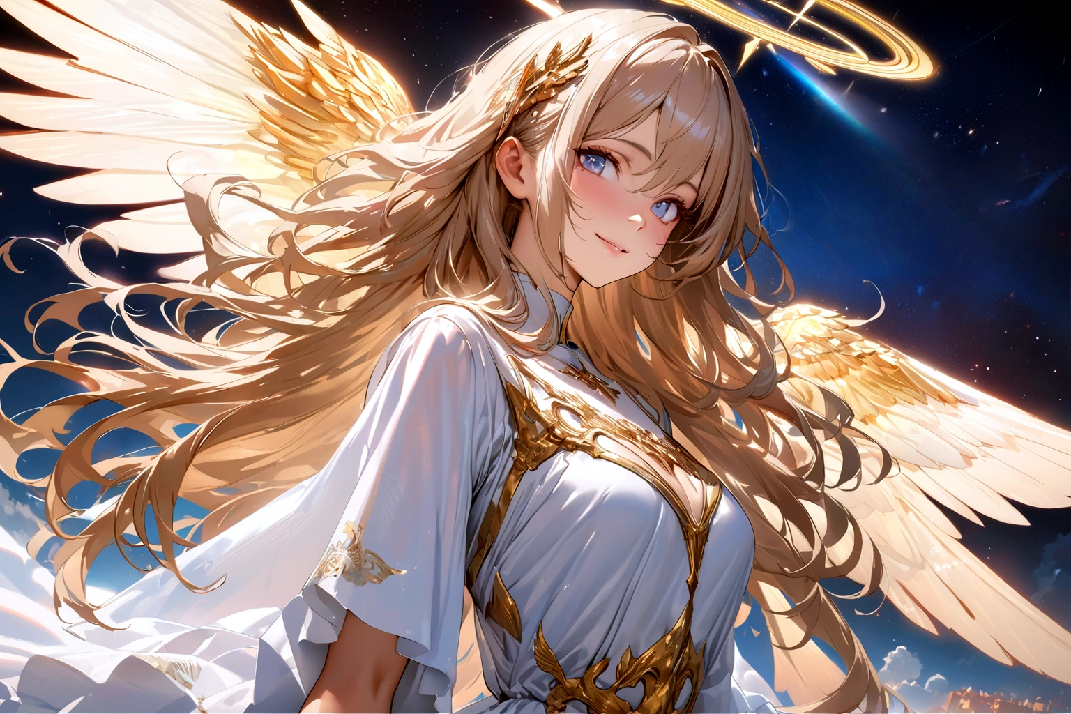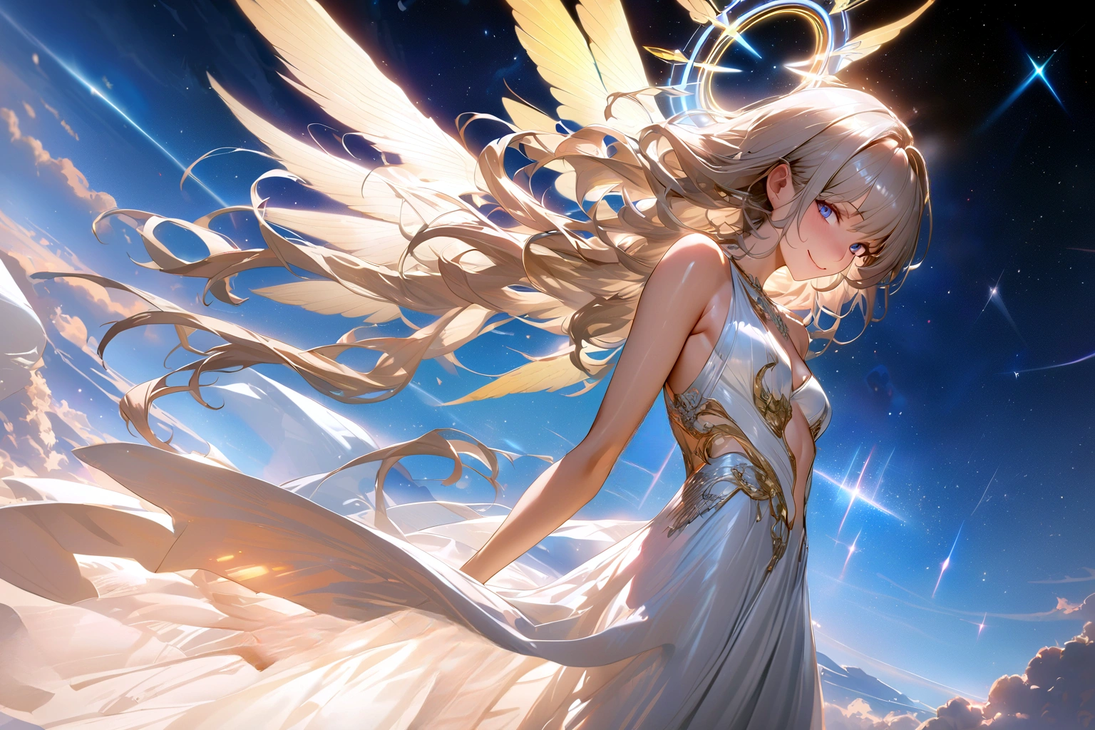 (masterpiece, best quality:1.3), illustration, (extream detailed), one girl, angel Descending