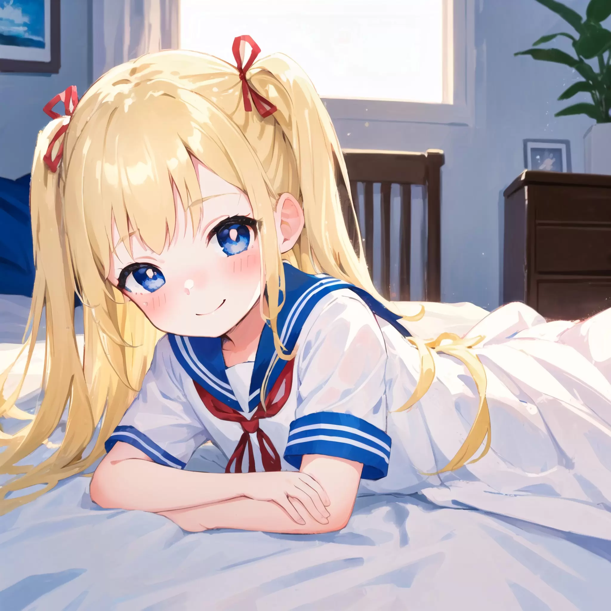 Blonde girl in summer clothes