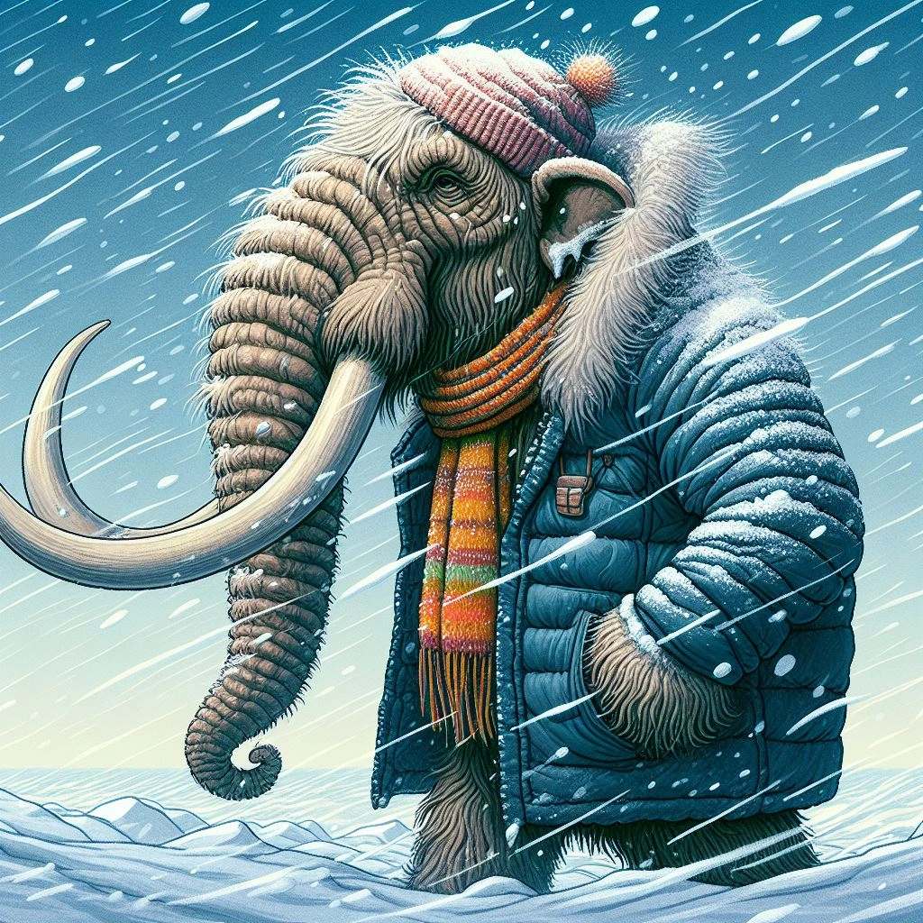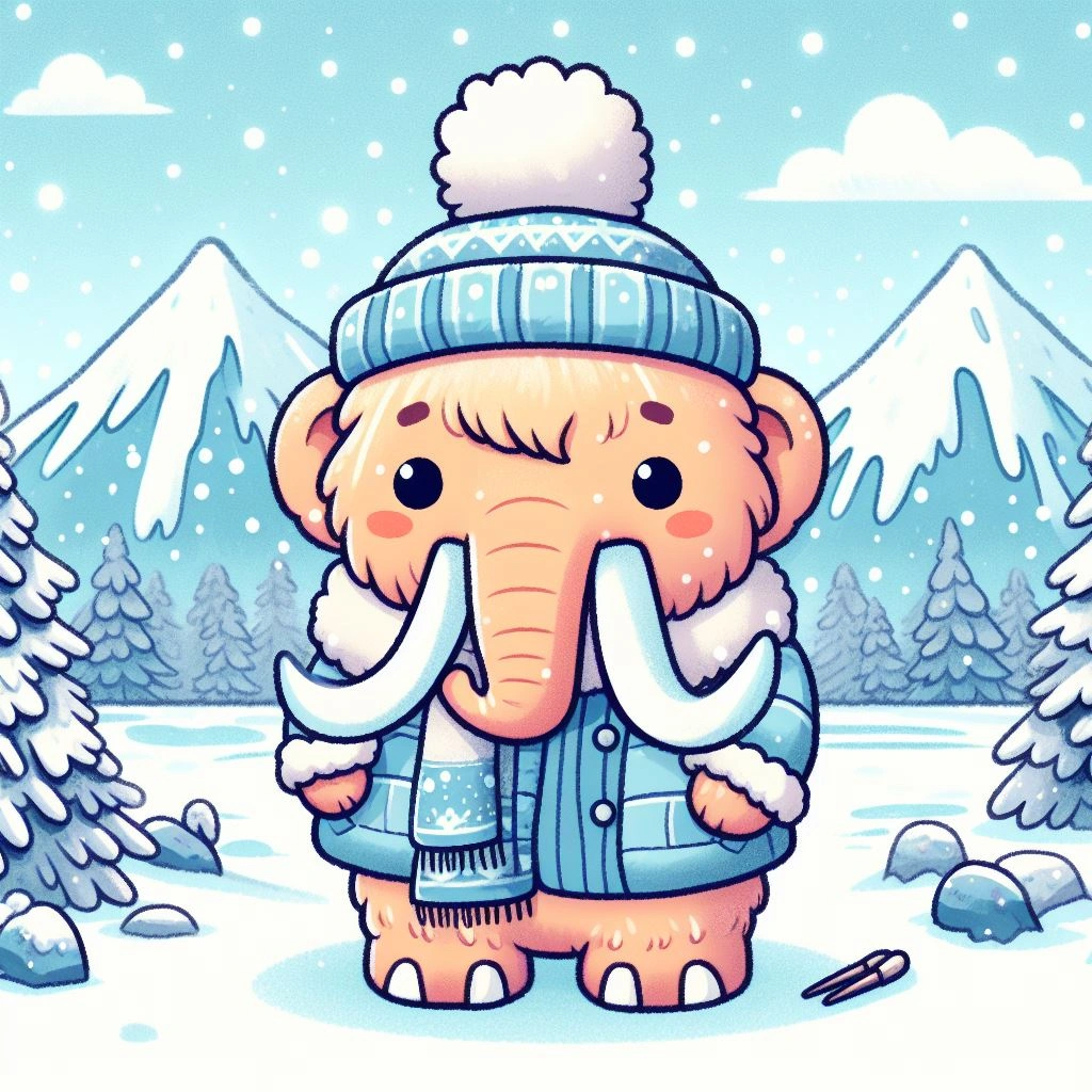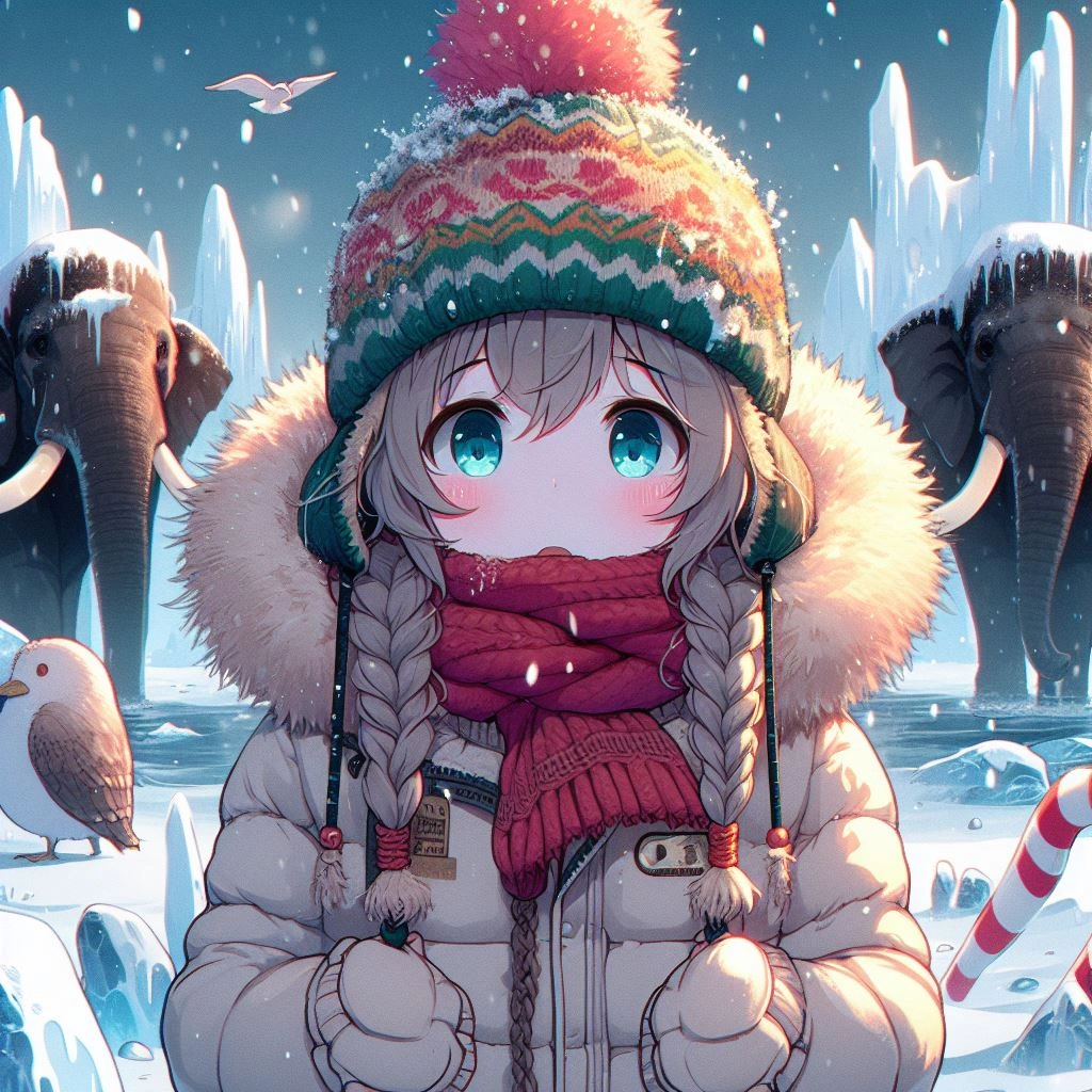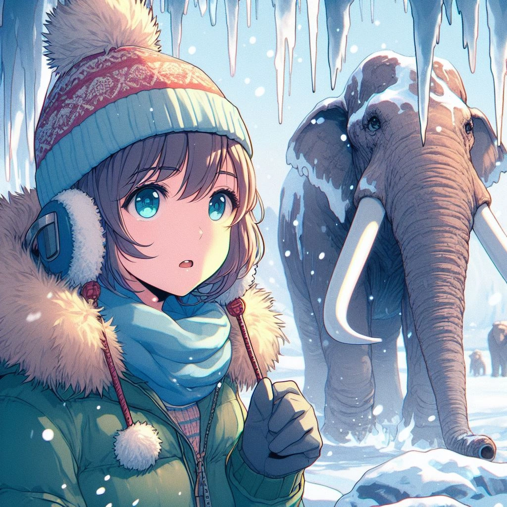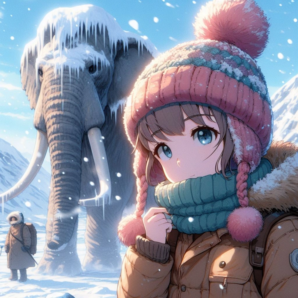 前半にマンモス、後半に女の子のイラストです