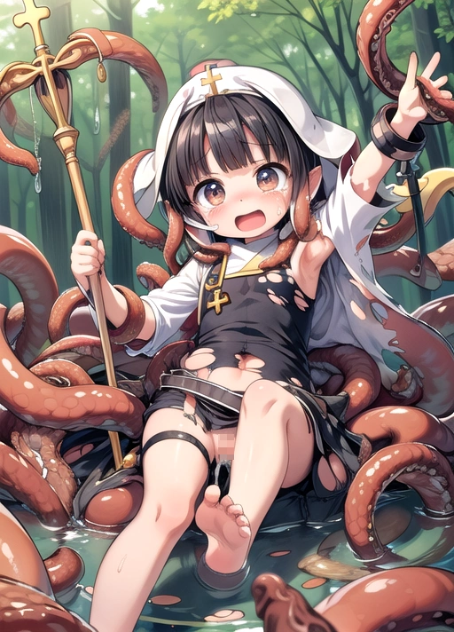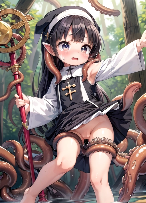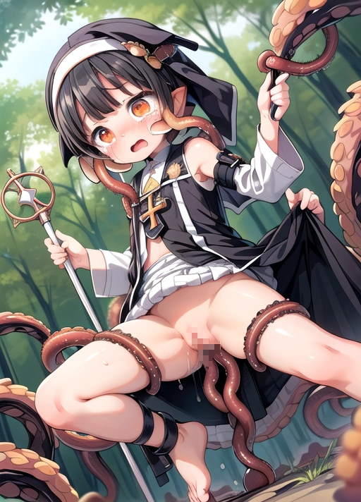 森で触手に襲われちゃう聖職者ちゃん