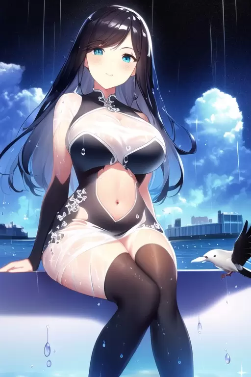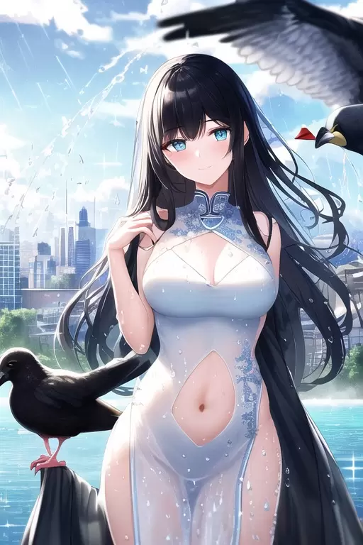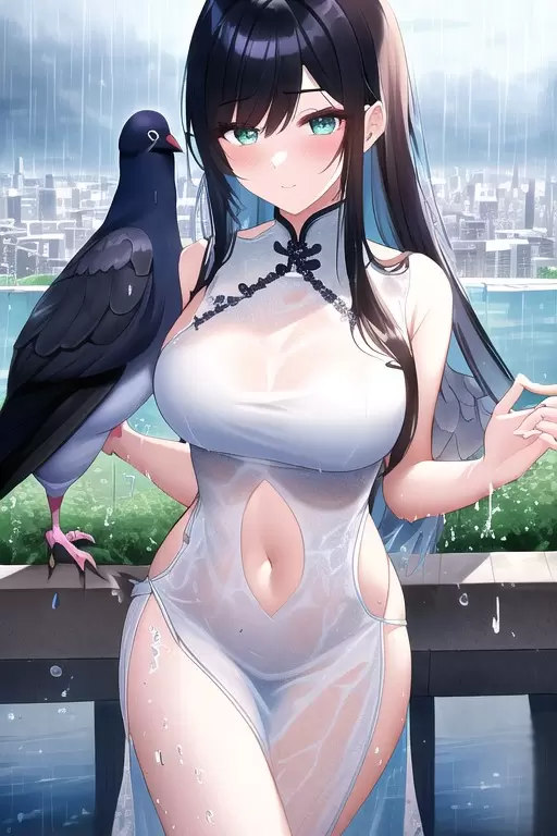 チャイナドレスと鳥です