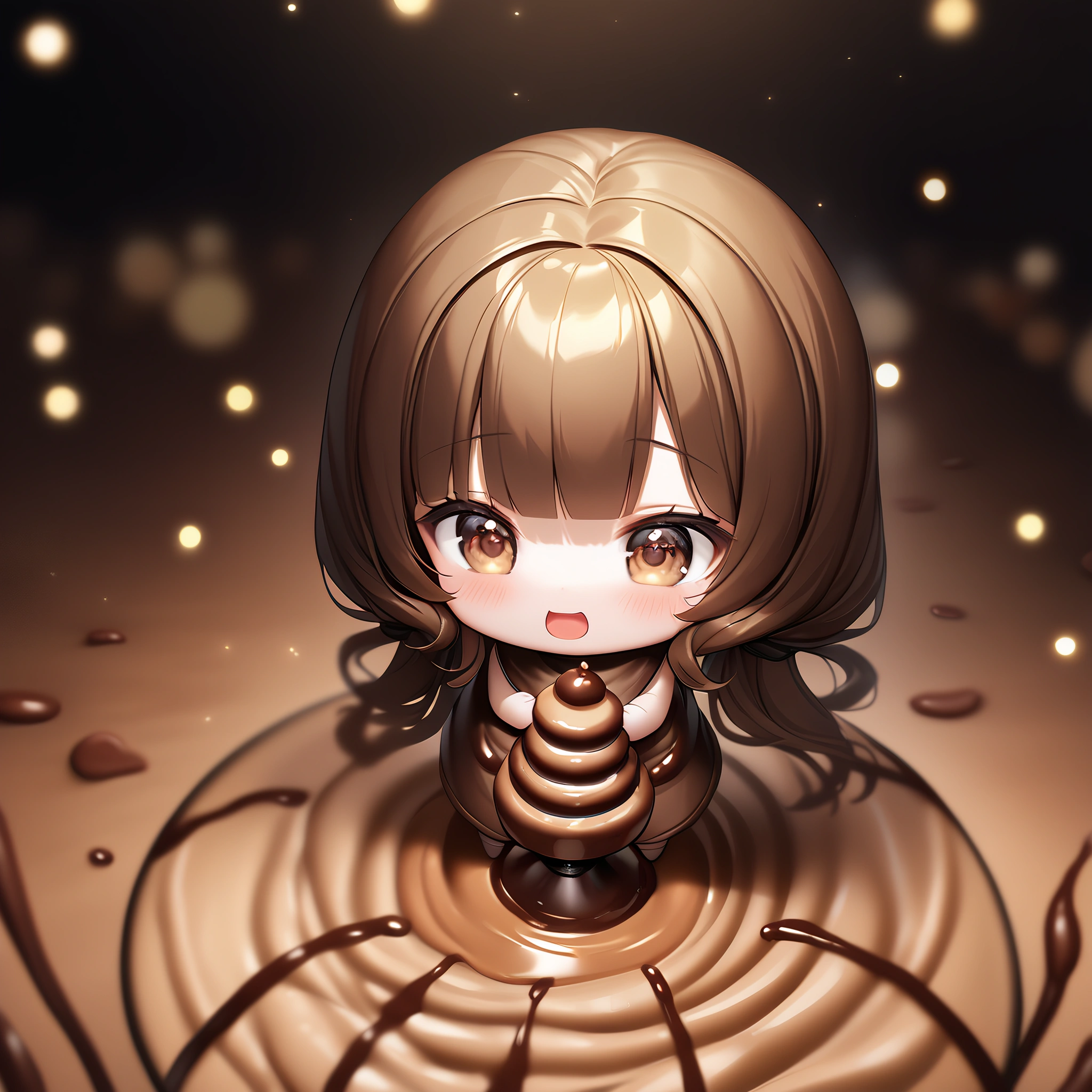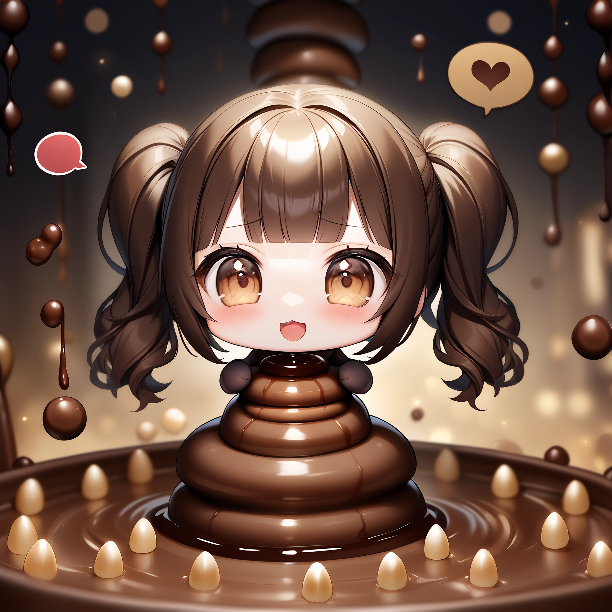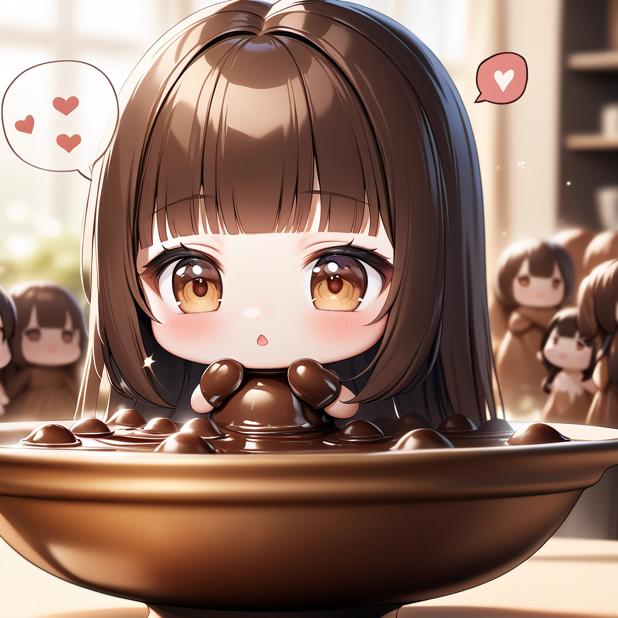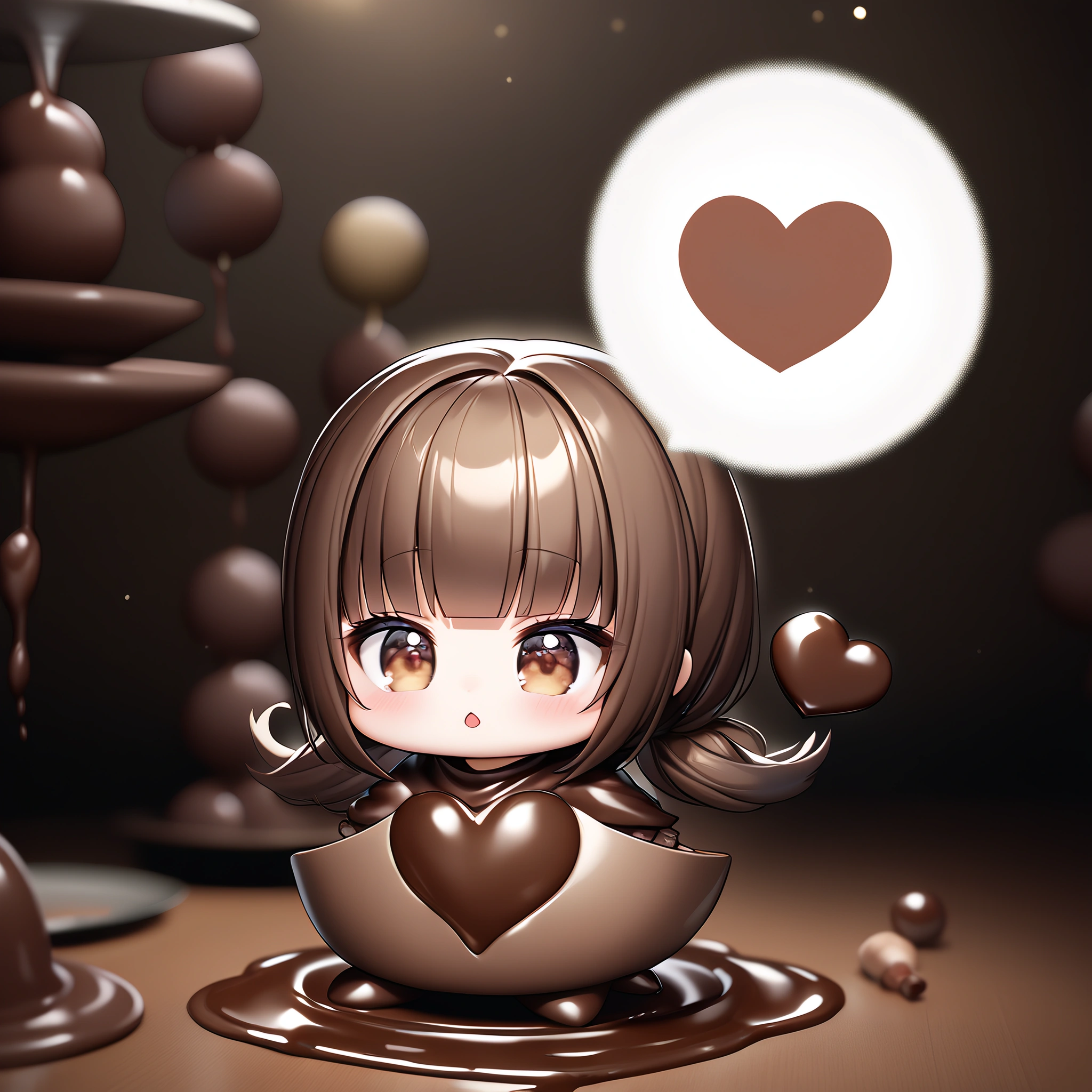 Chibi failed to make chocolate and got covered in chocolate.