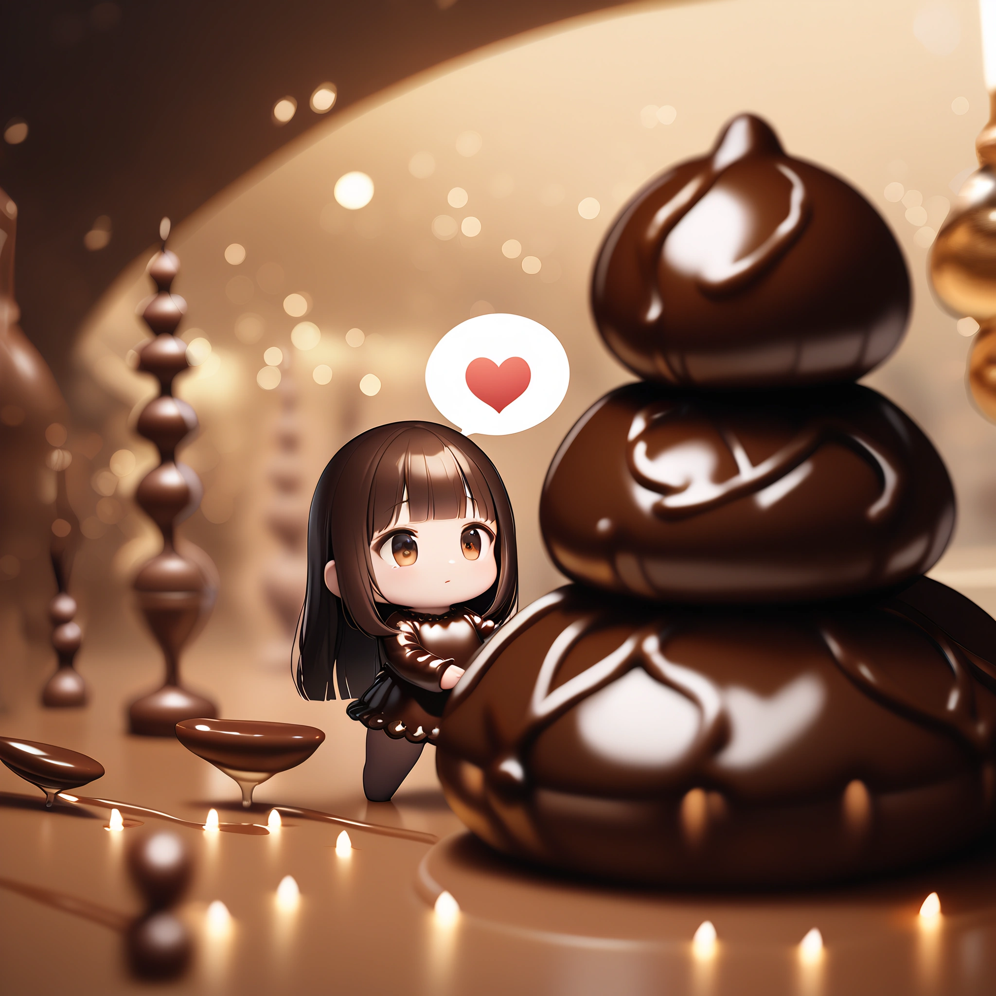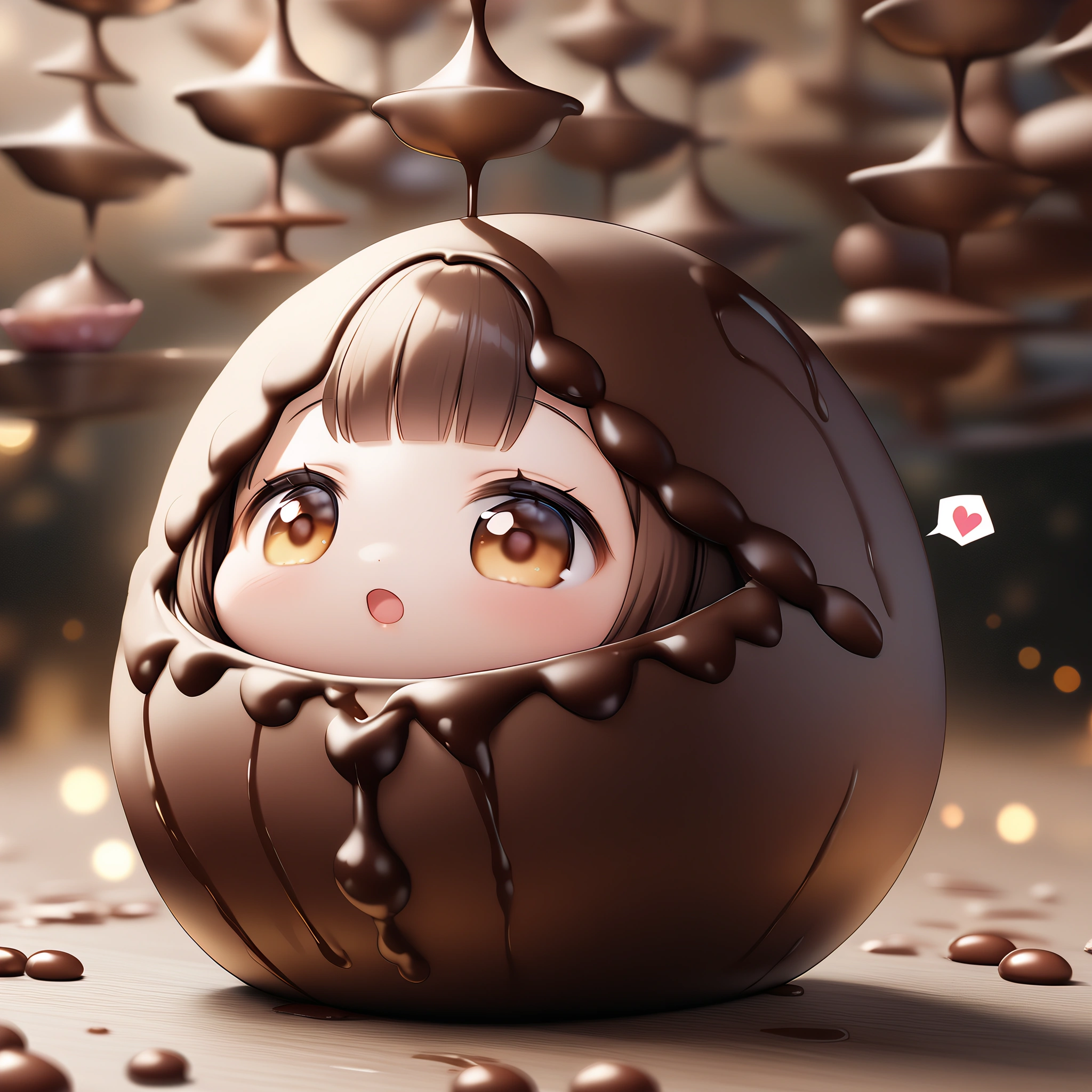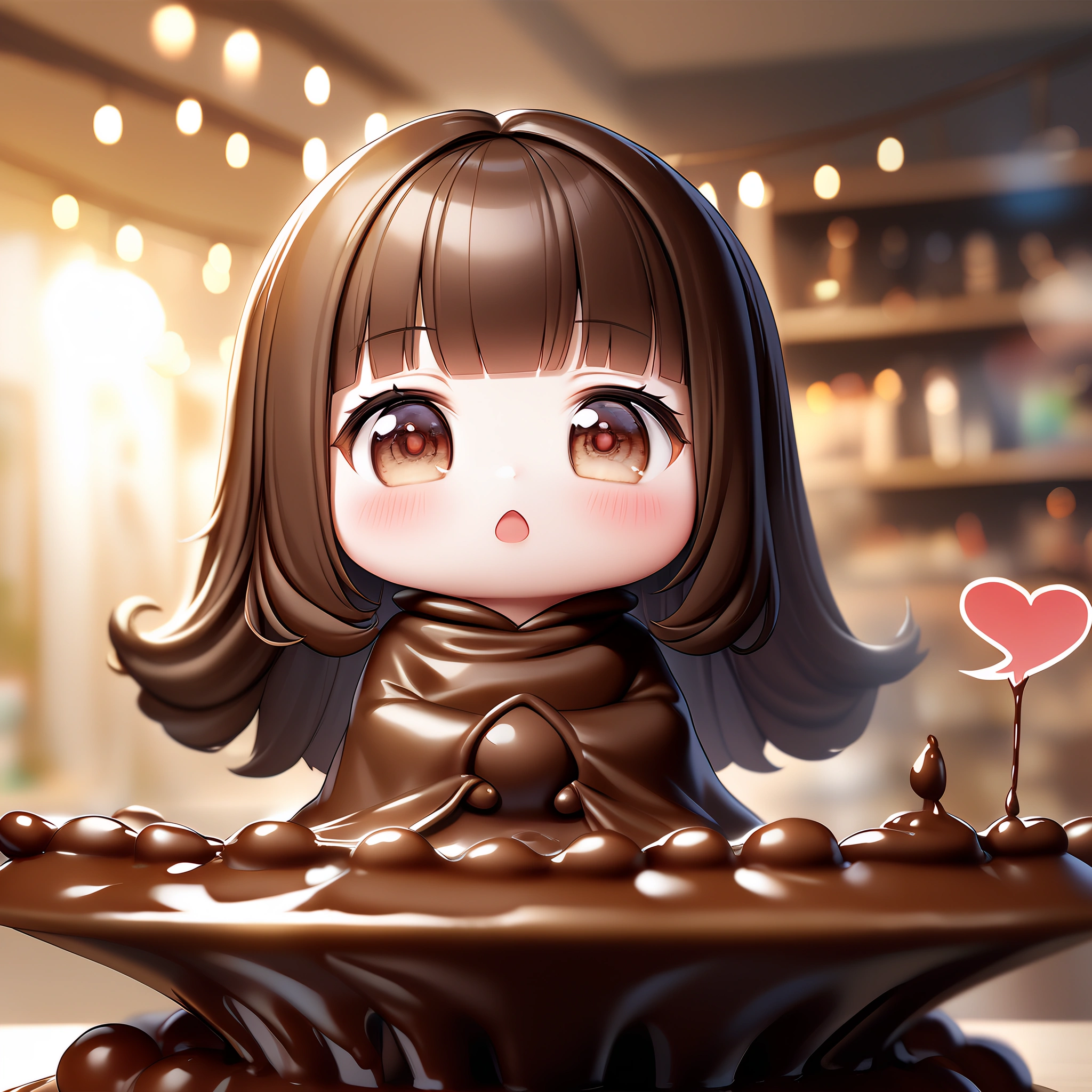 Chibi failed to make chocolate and got covered in chocolate.