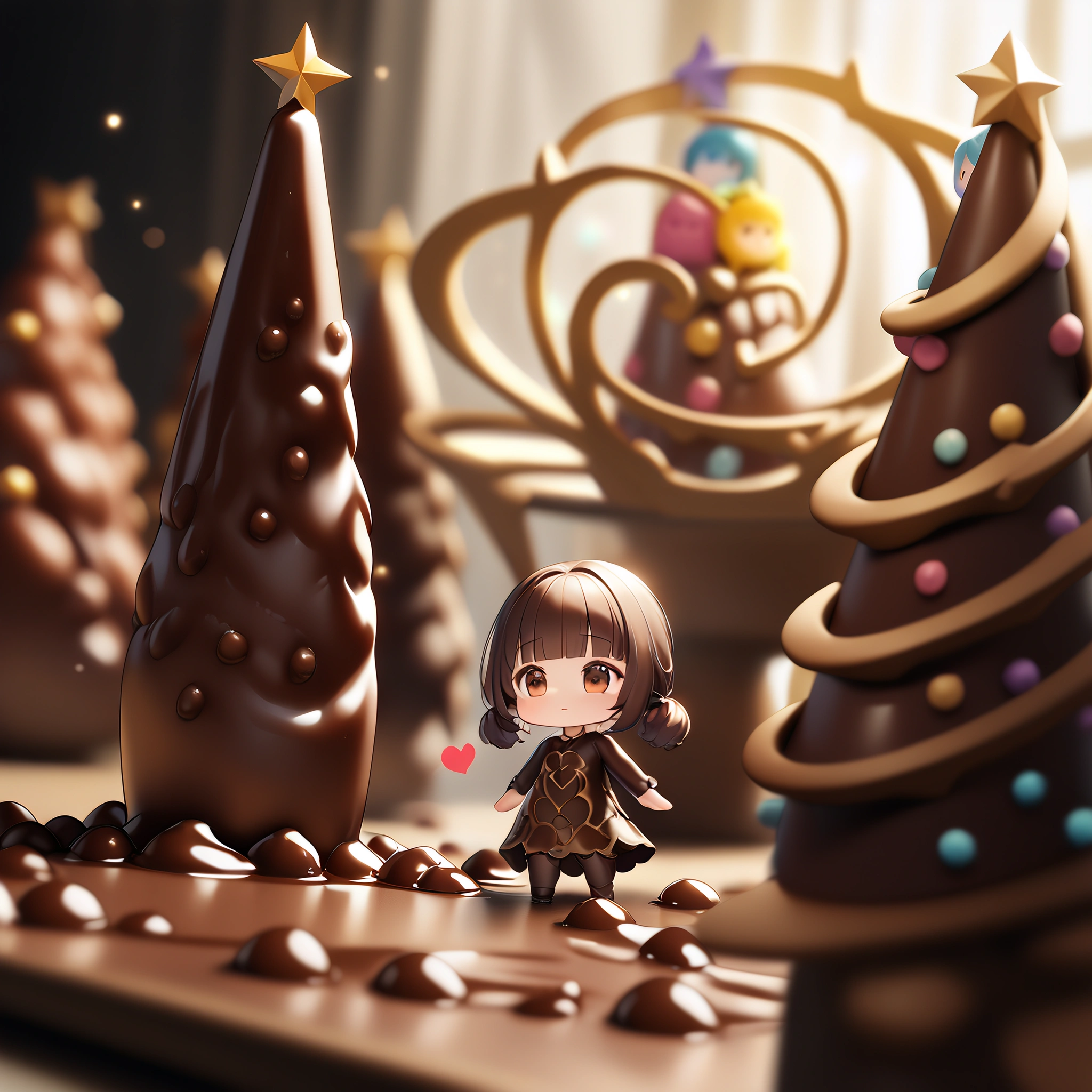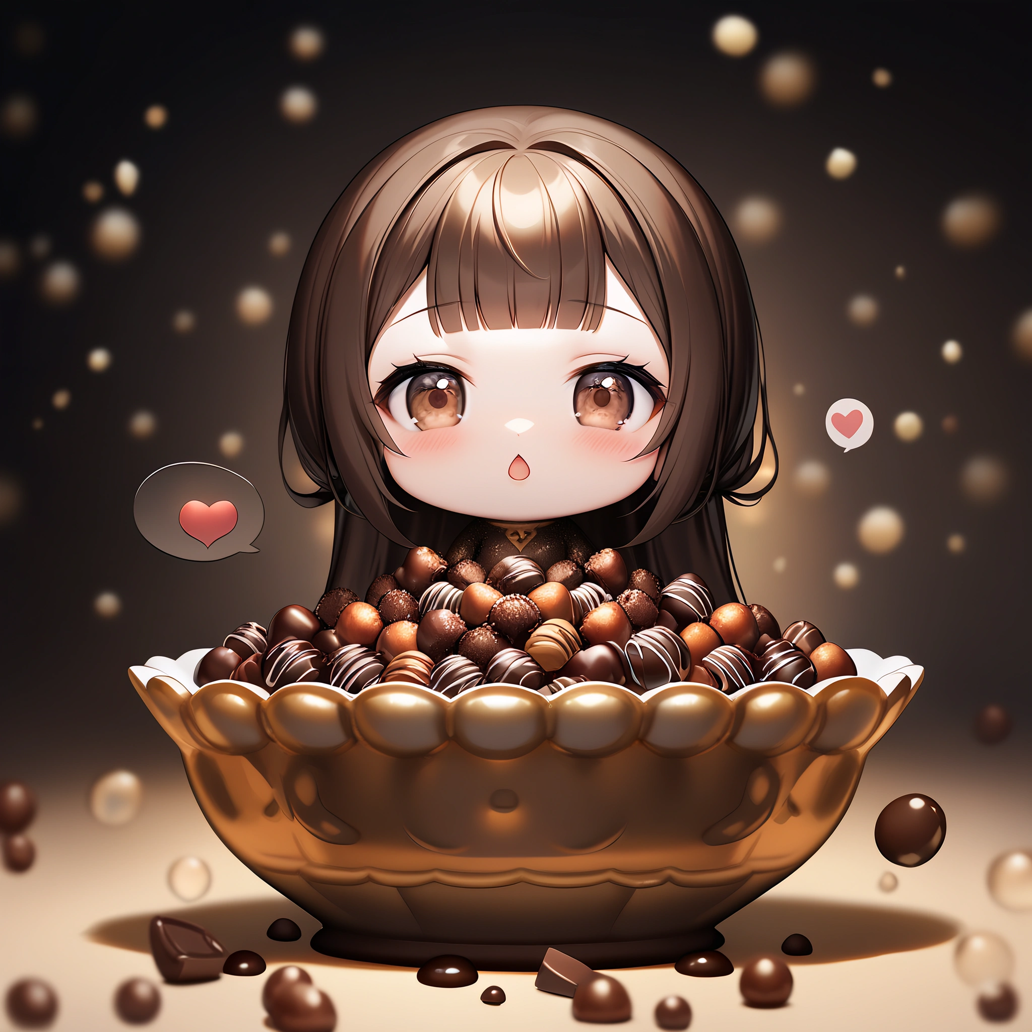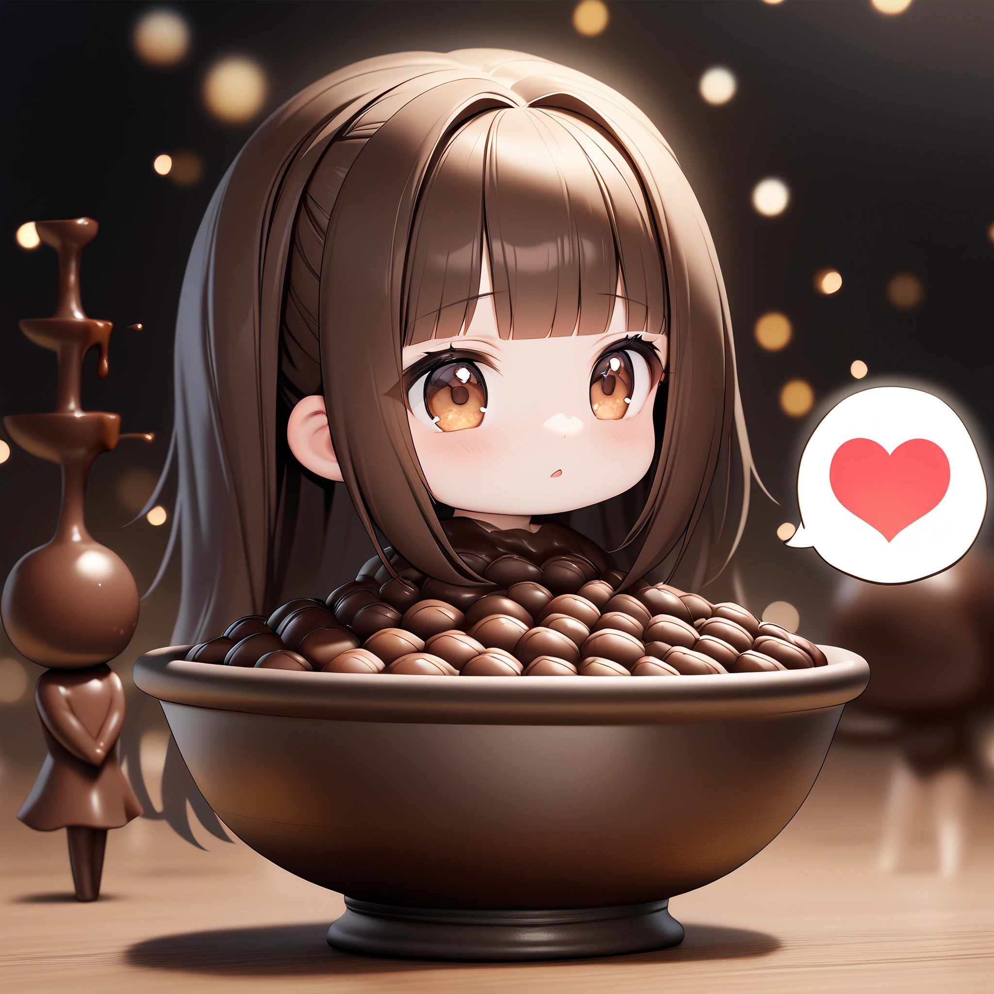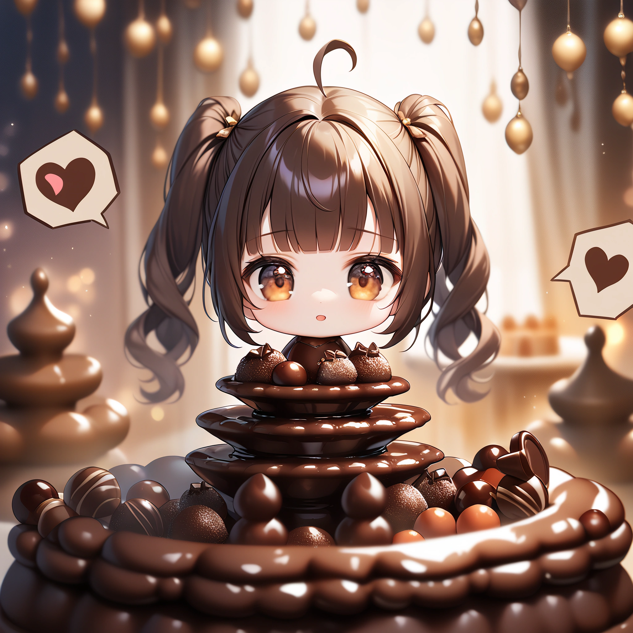 Chibi failed to make chocolate and got covered in chocolate.