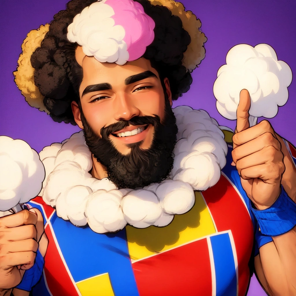 ありがとうございます! もう少しどドデカいアフロだったら綿あめ感も更に増していたかもしれないです、カラフルカラーで誤魔化してますがw