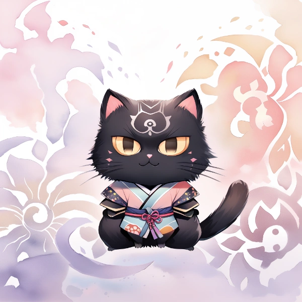 Kimono black cat (watercolor)