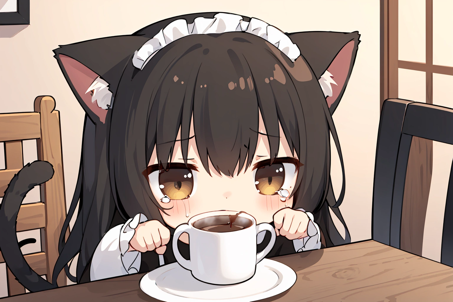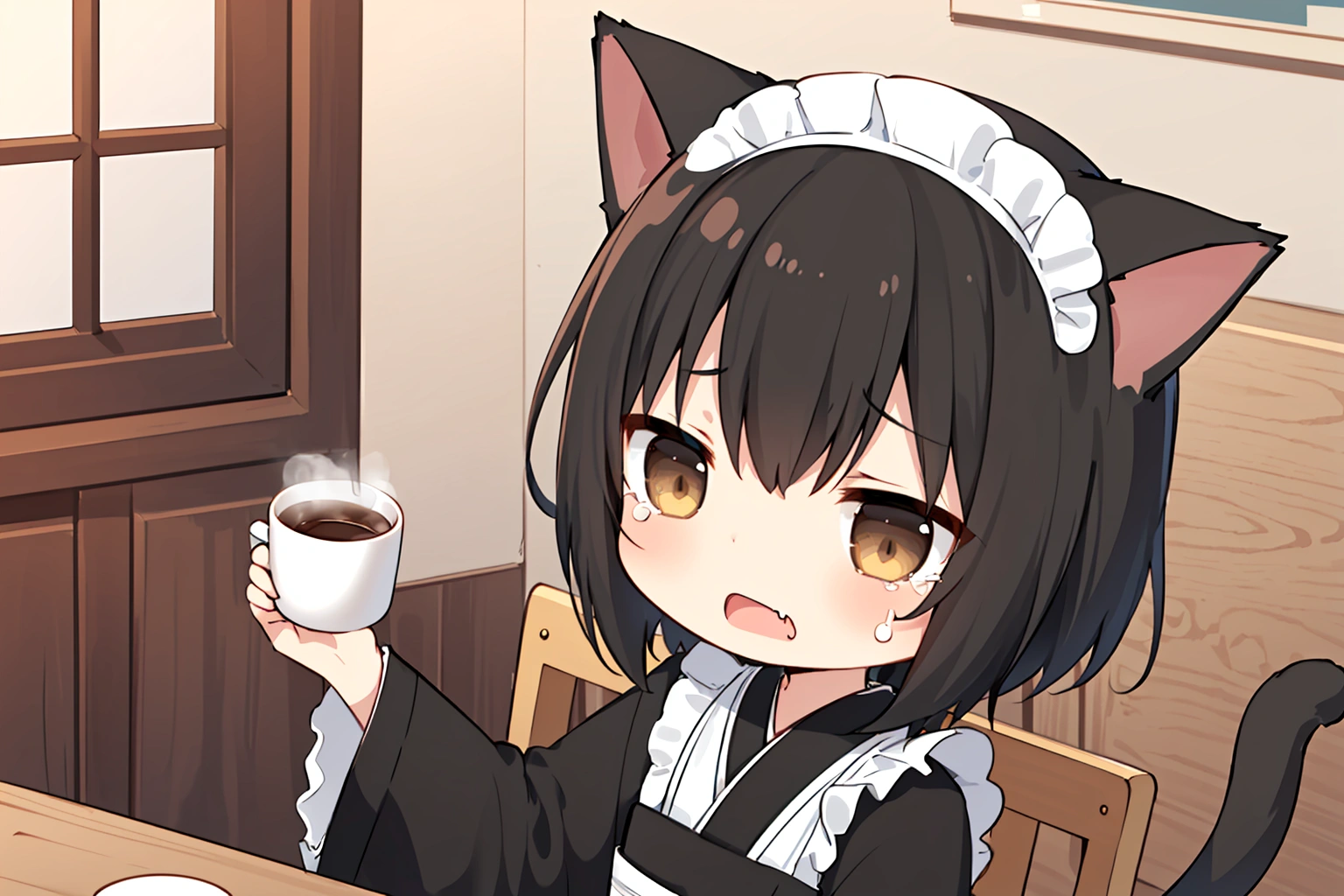 If it's piping hot, you can't drink it with your cat's tongue~><