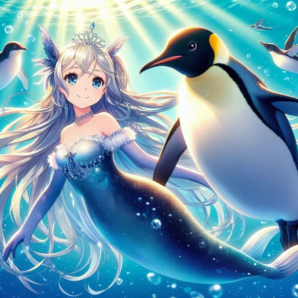 皇帝ペンギンのオスとメスとヒナのプロンプトしかないのですが、人間も勝手に登場しましたw