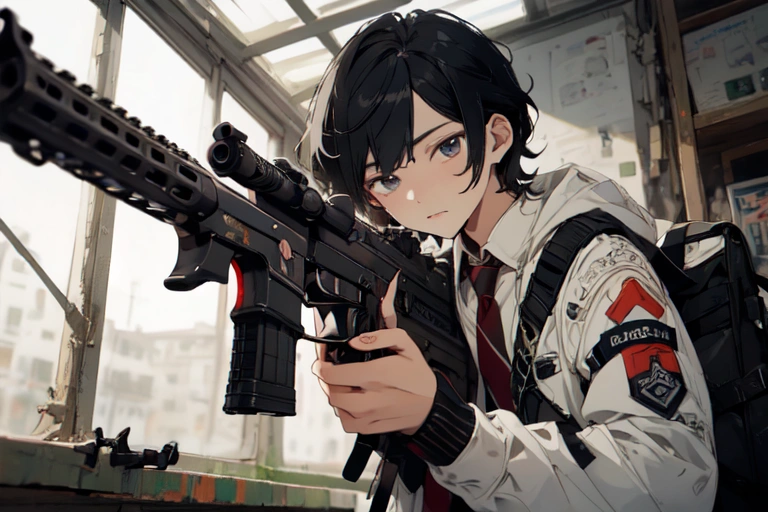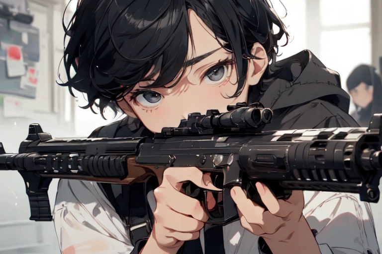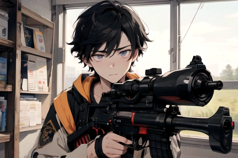 A senior with a murderous look on his face is cool (even if the gun is weird).