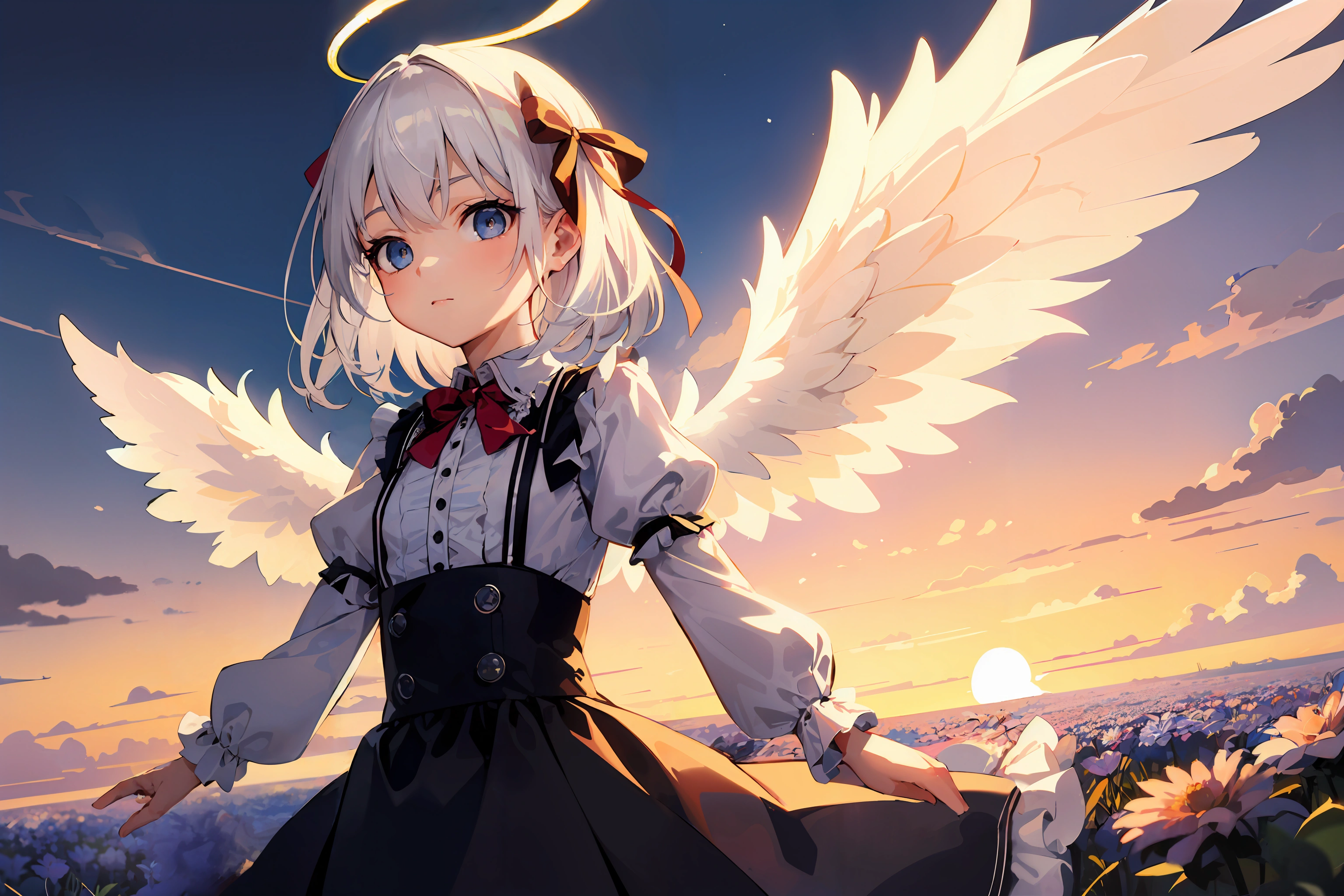 (masterpiece, best quality:1.3), illustration, (extream detailed), one girl, angel Descending