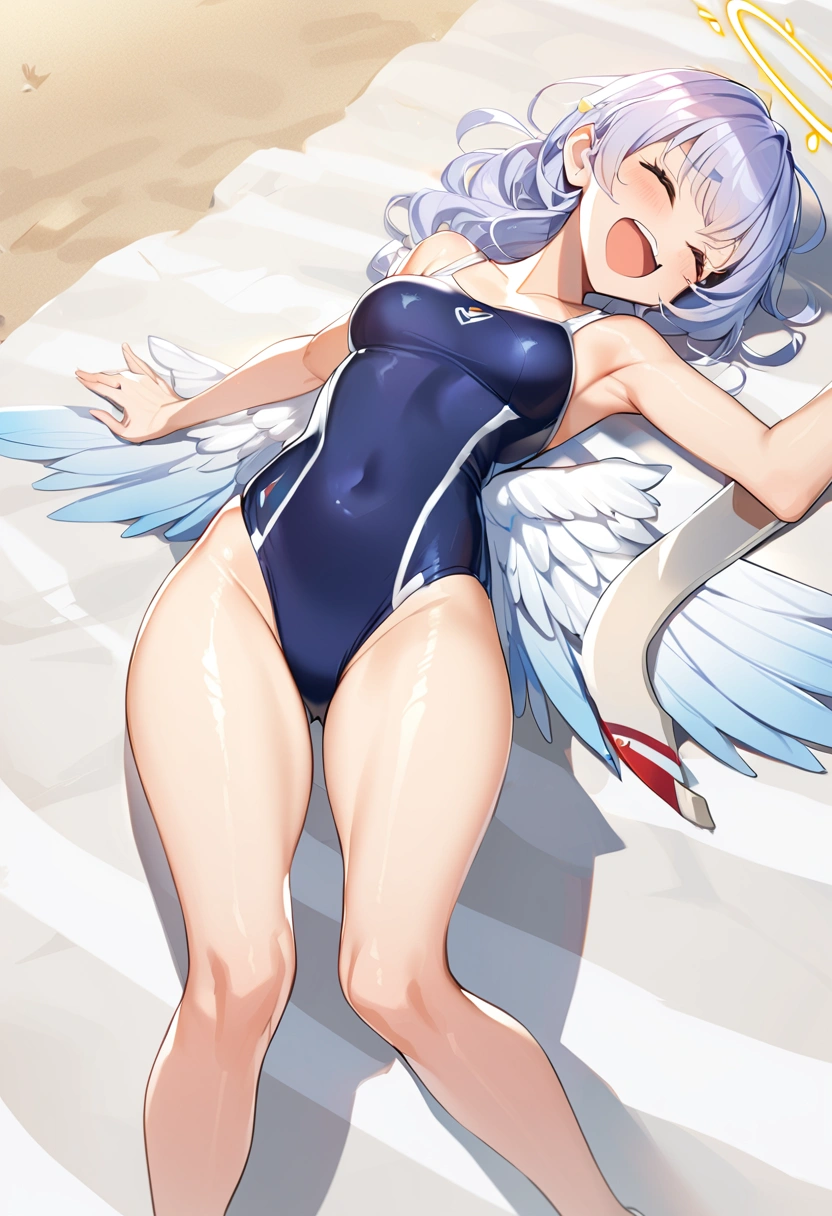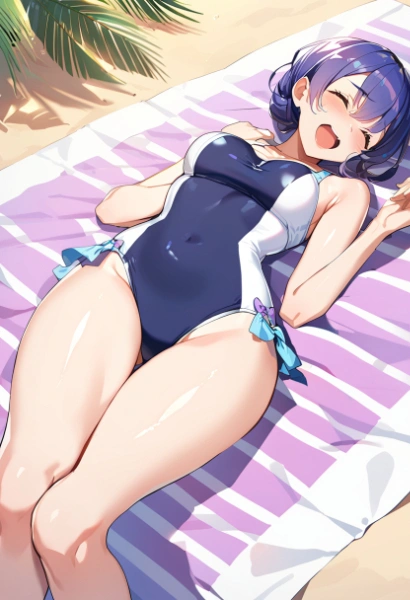 寝転がりワンピース水着さん(天使差分あり)