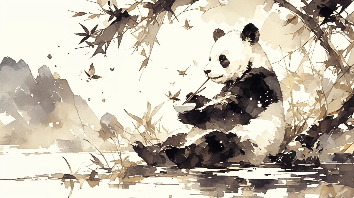 水墨画風パンダ