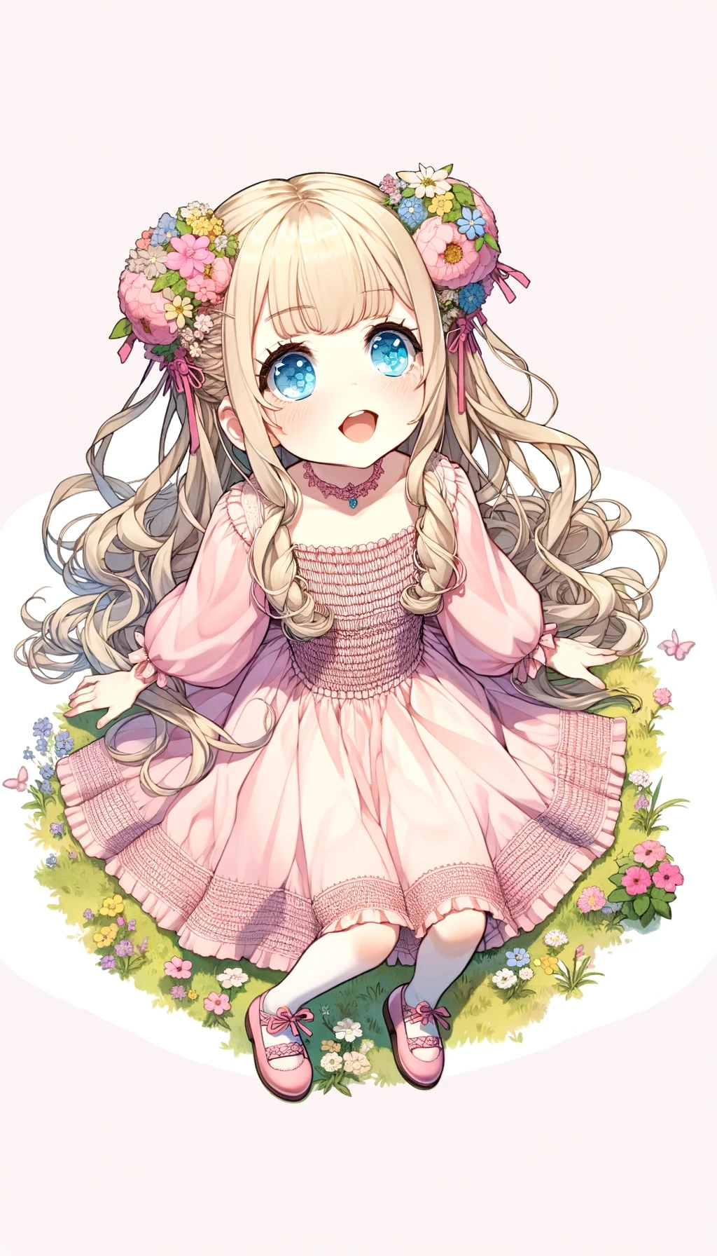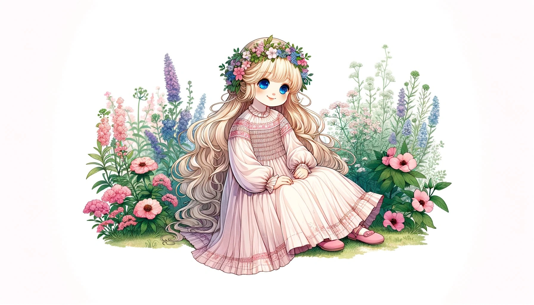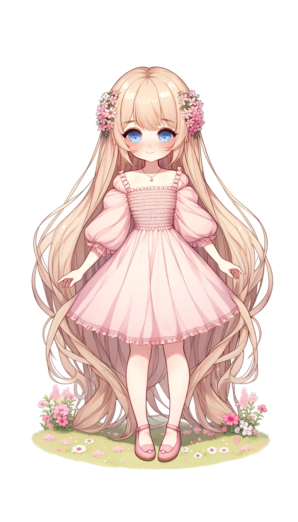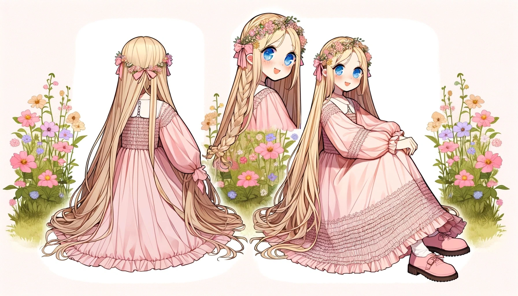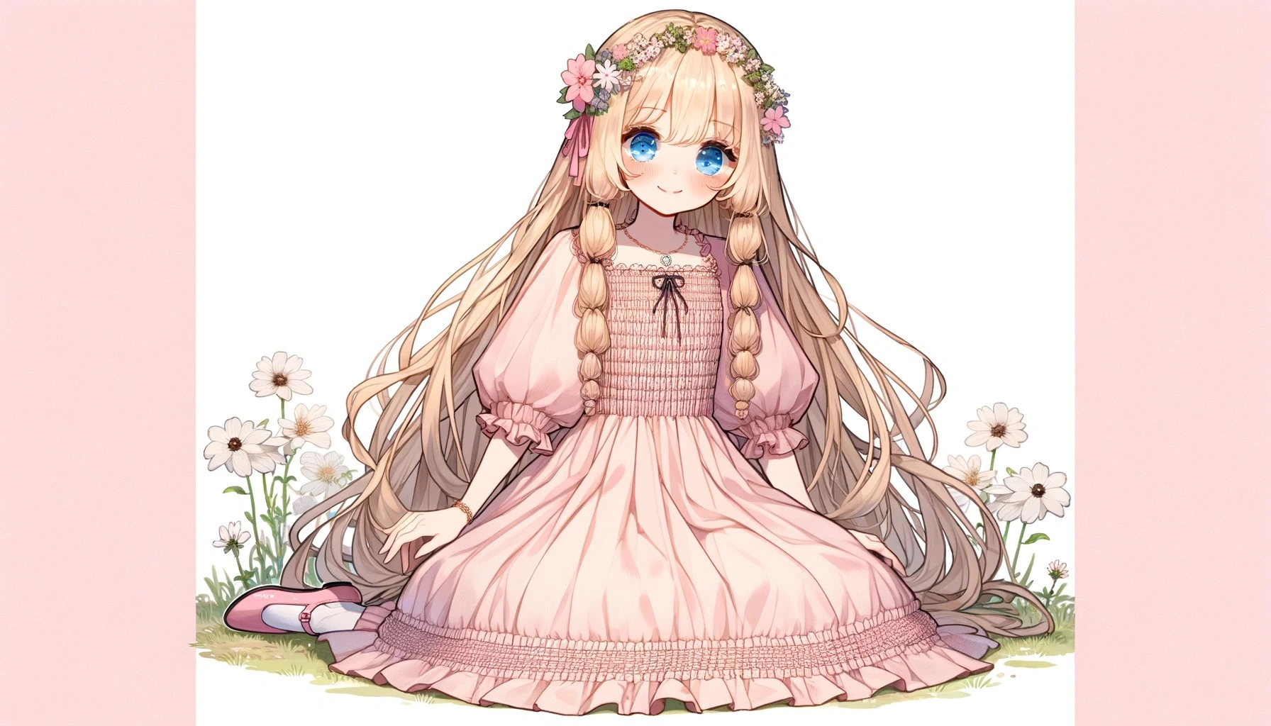 Blonde girl in a pink smock dress