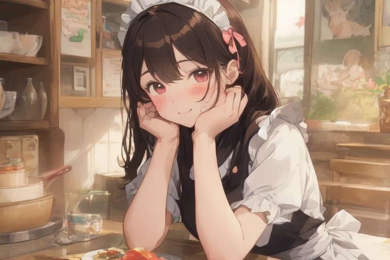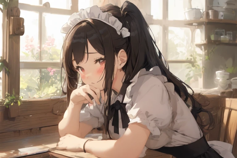 ほおづえをつくメイド