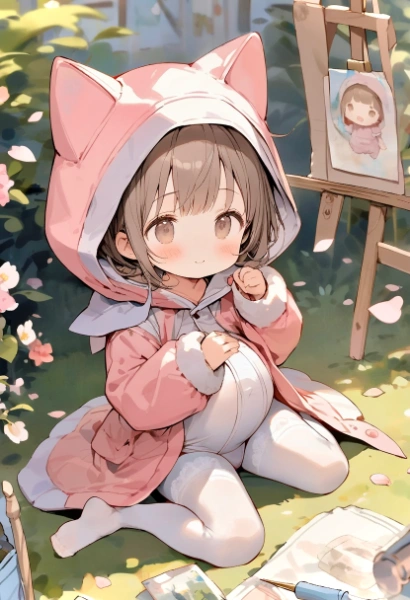 黒髪ロングの子でアニマルフード付きスーツ