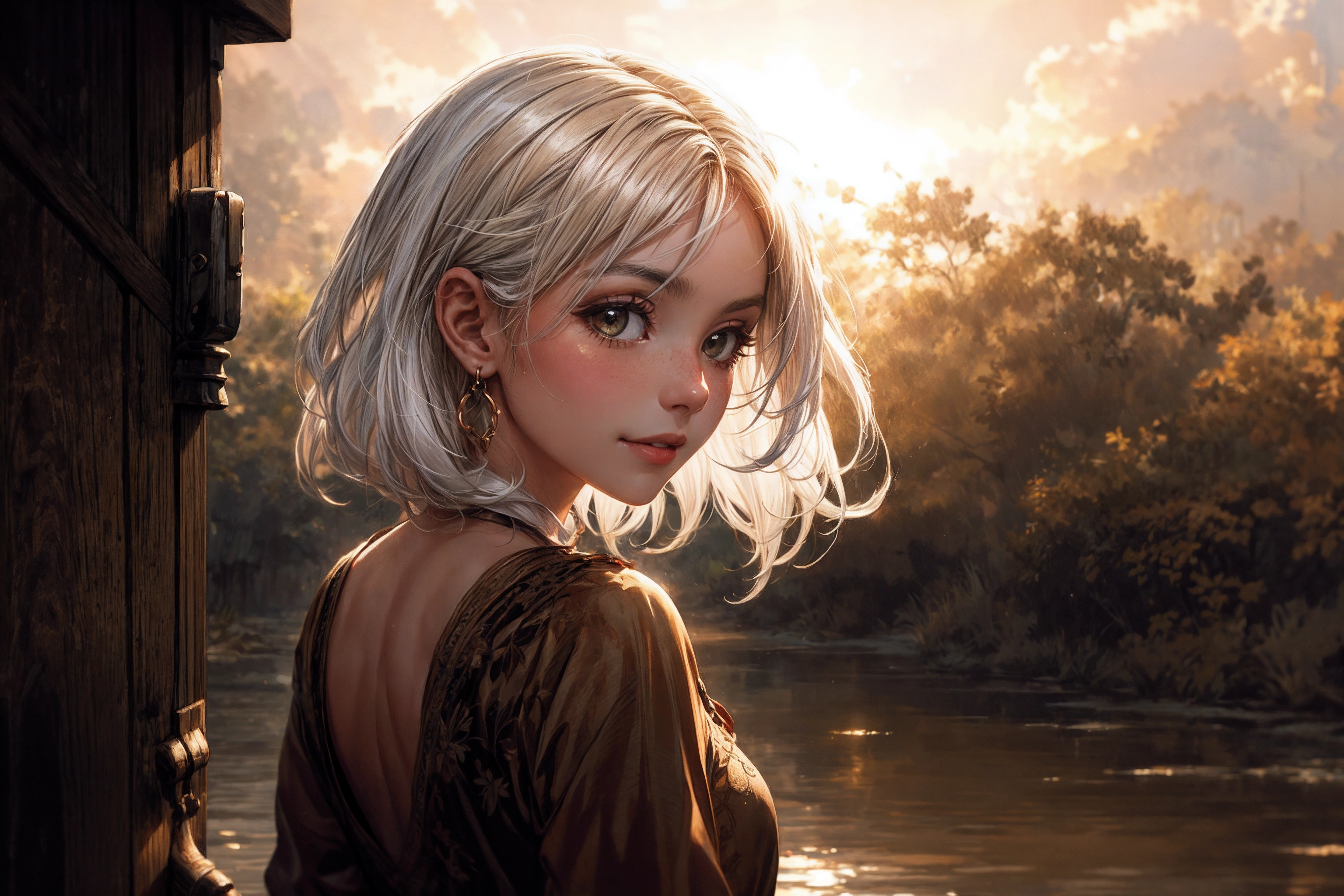 Beautiful woman looking back
