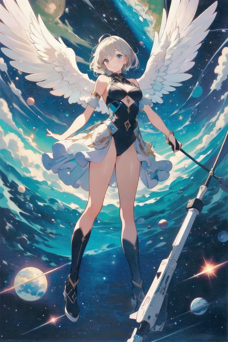 (masterpiece, best quality:1.3), illustration, (extream detailed), one girl, angel Descending