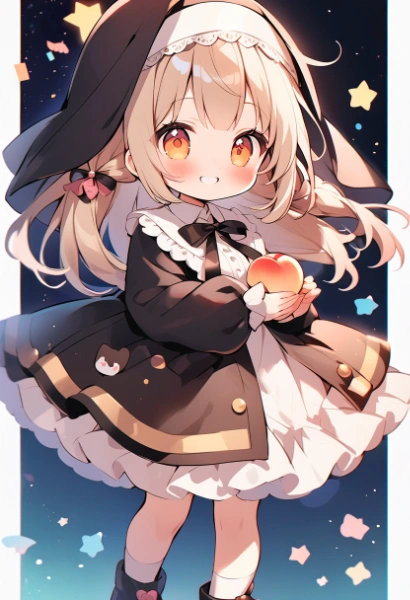 桃と黒髪メイドちゃん