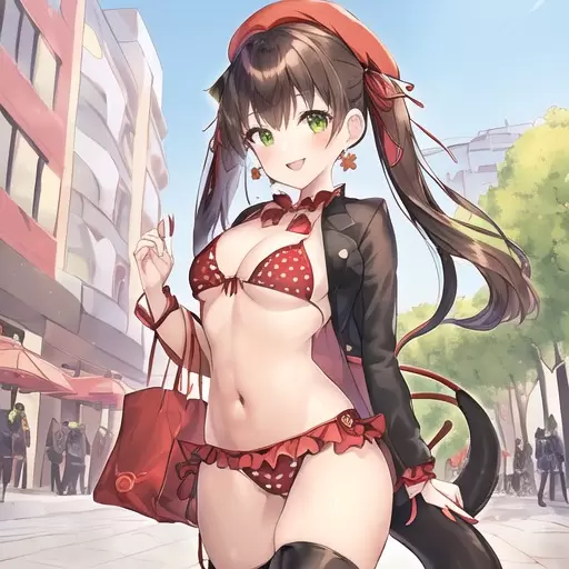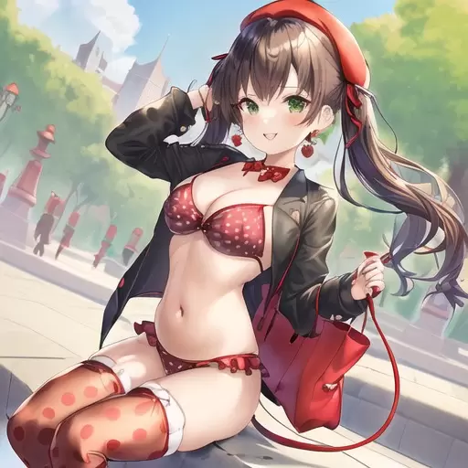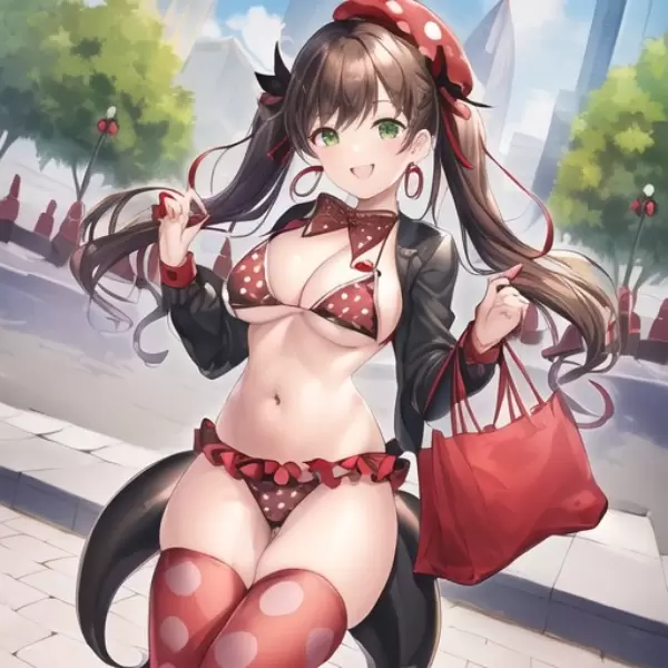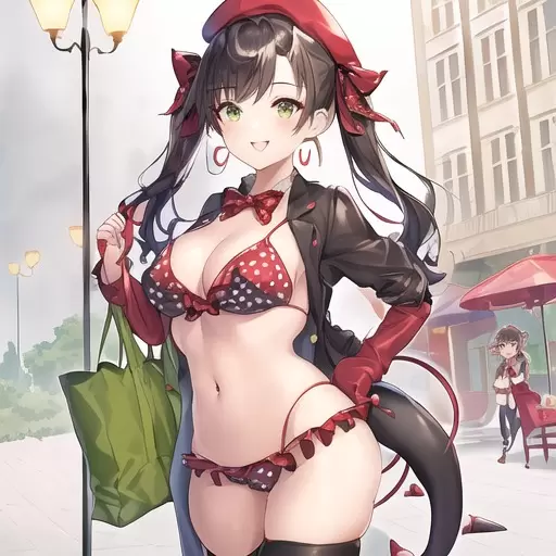 燕尾服とストリングビキニを組み合わせた服を着た女の子です