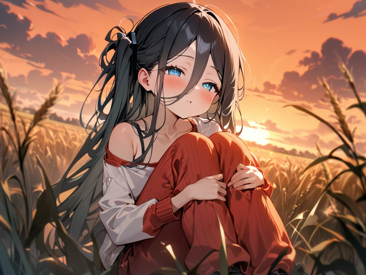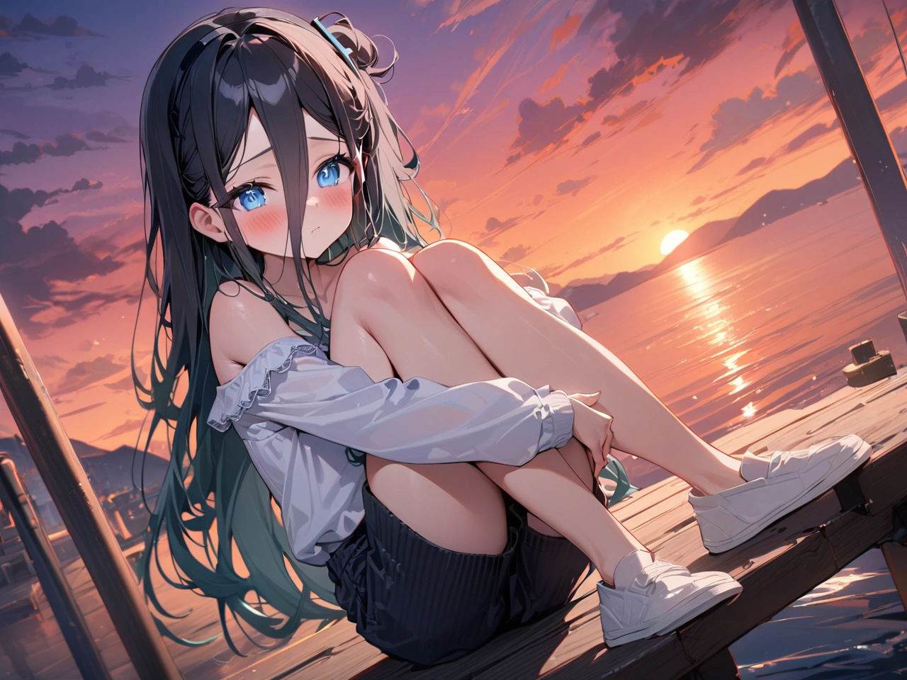 オフショルダー体育すわりのアリス【ブルアカ・天童アリス】