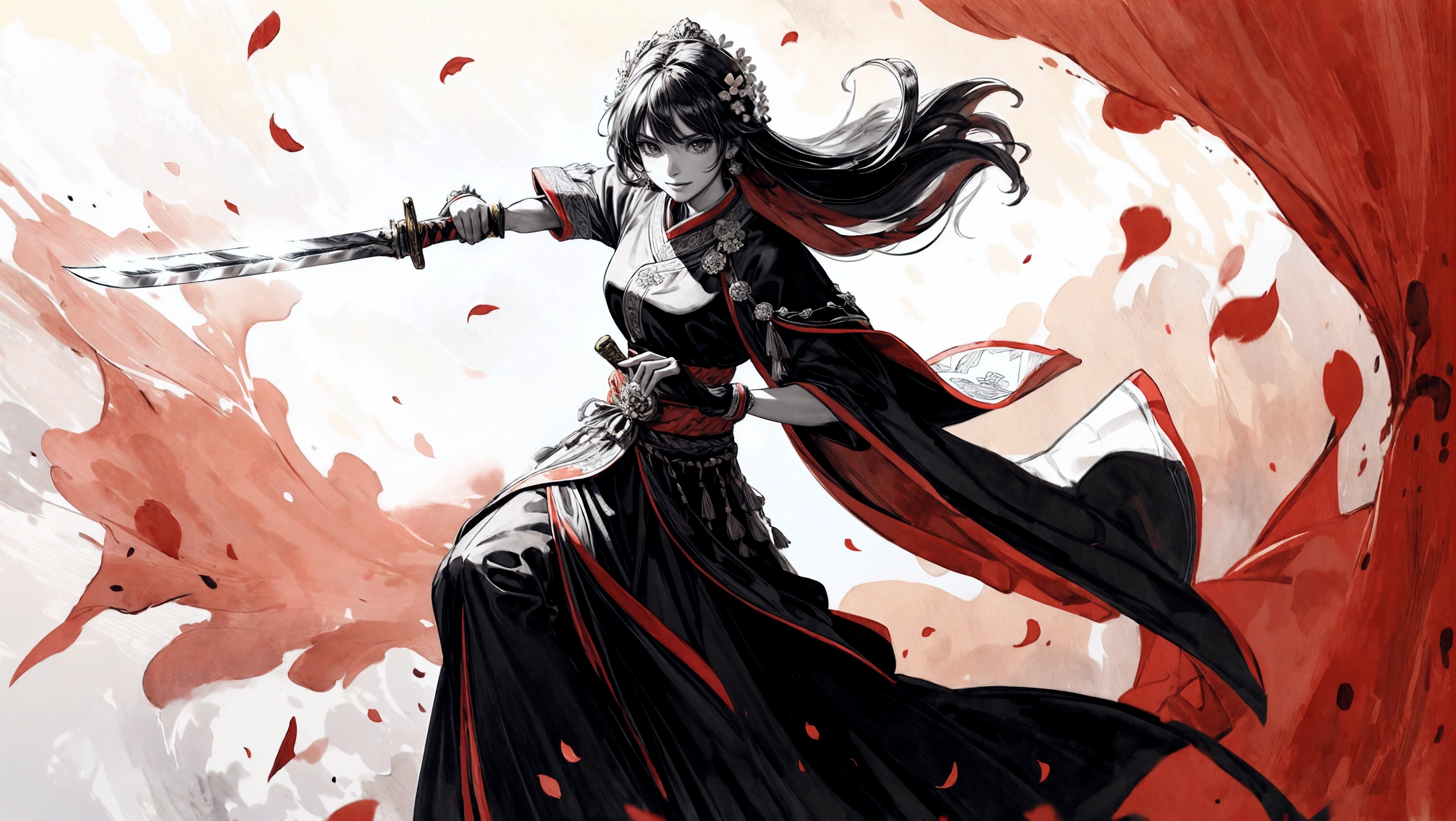 Cherry blossom trees and swordsman