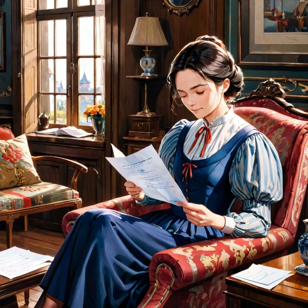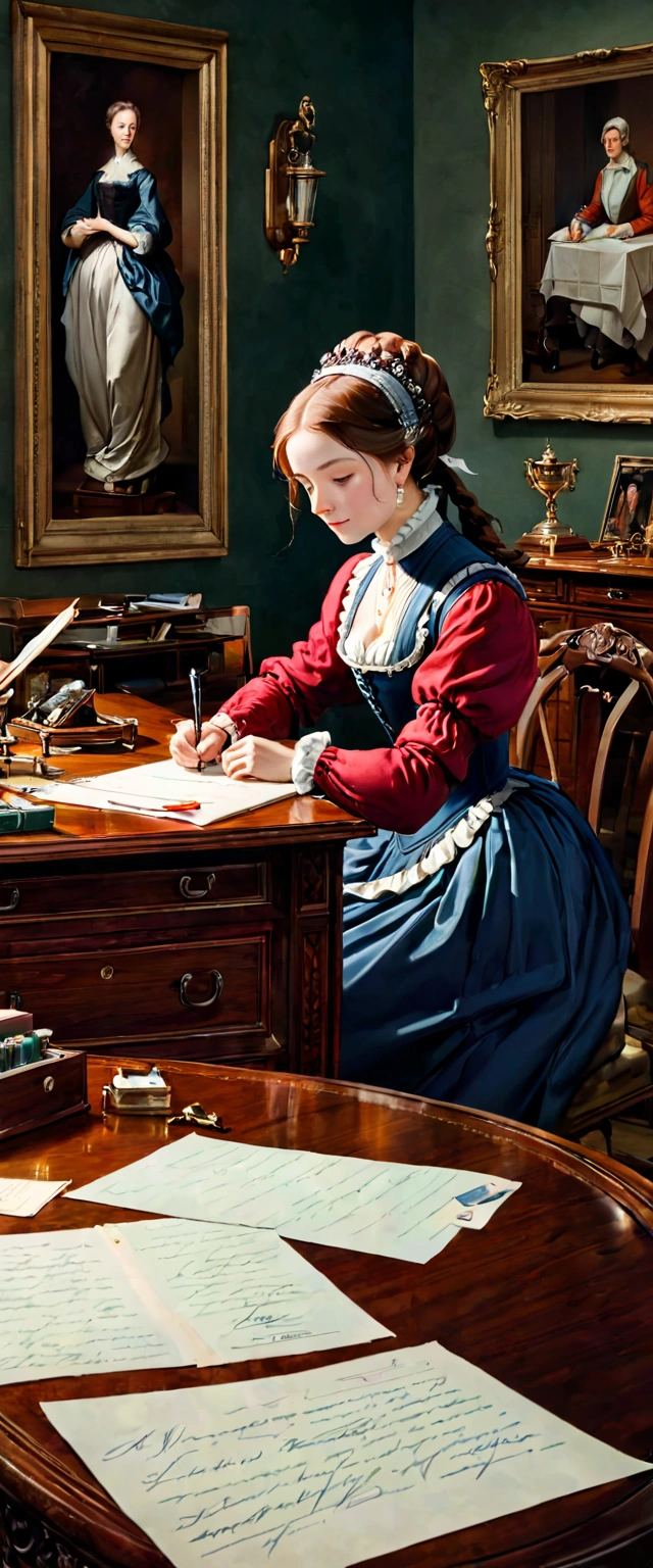 A woman writing a letter at a desk