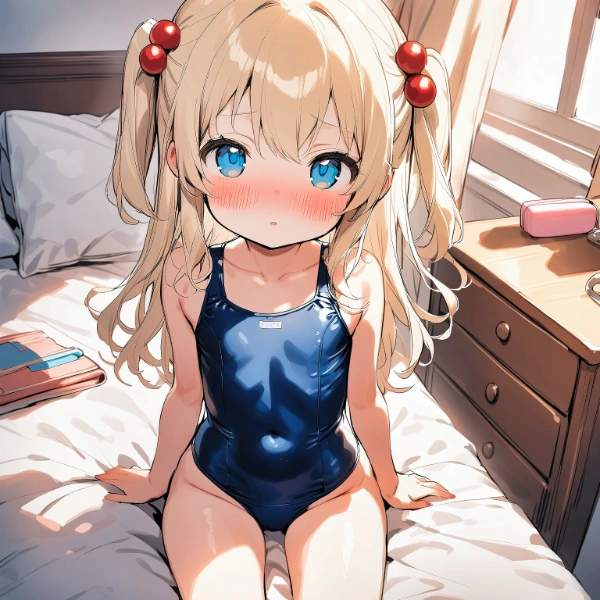 Blonde girl in school swimsuit