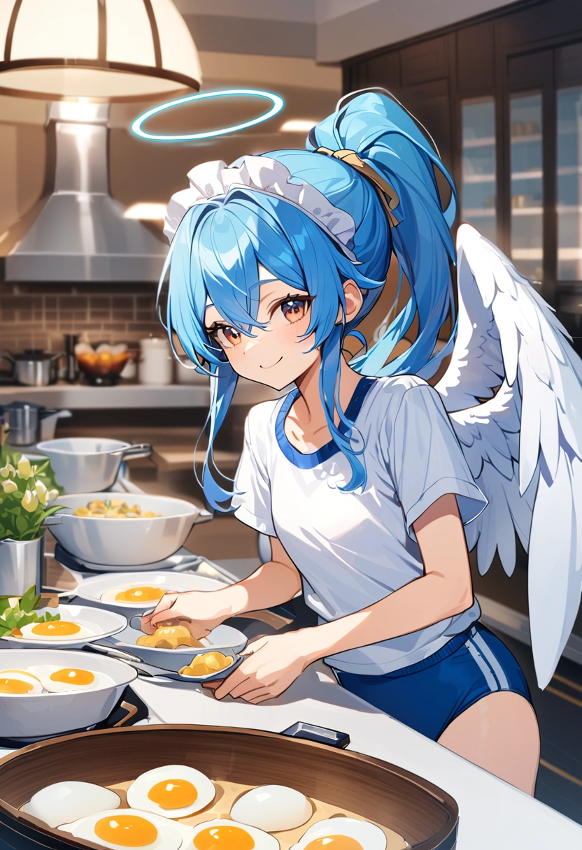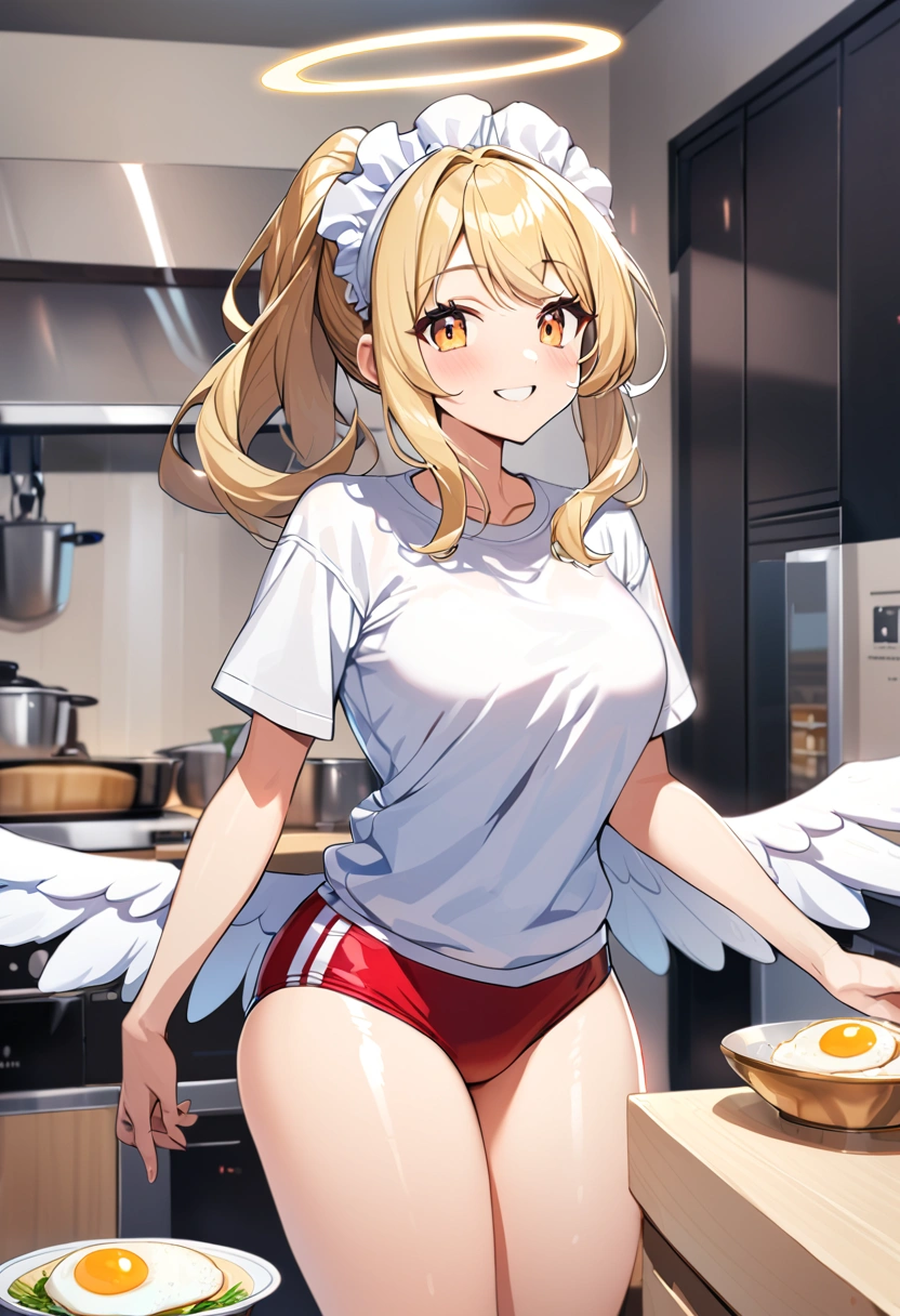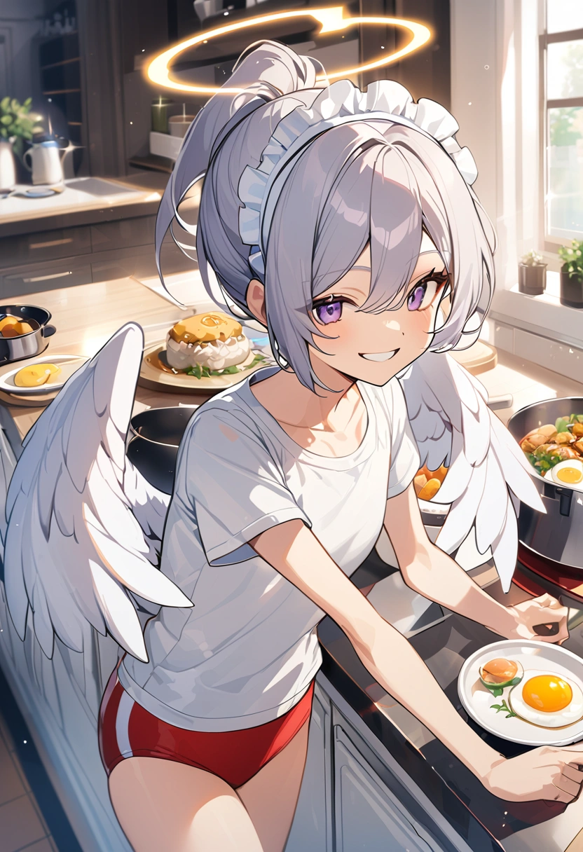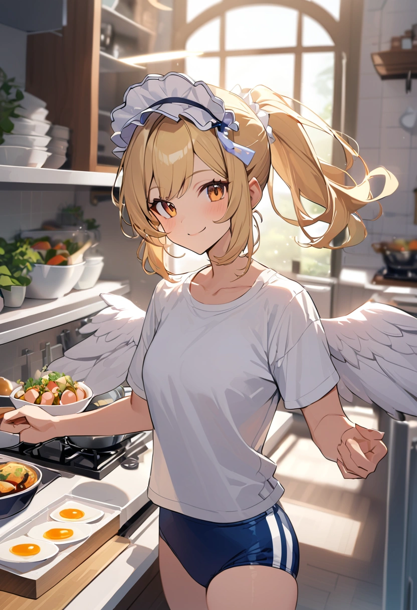Maid angel cooking in bloomers