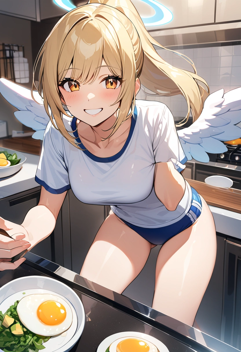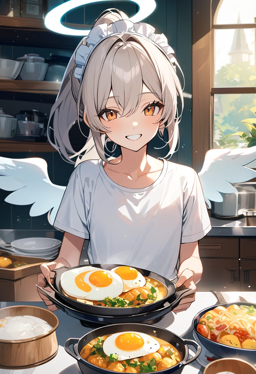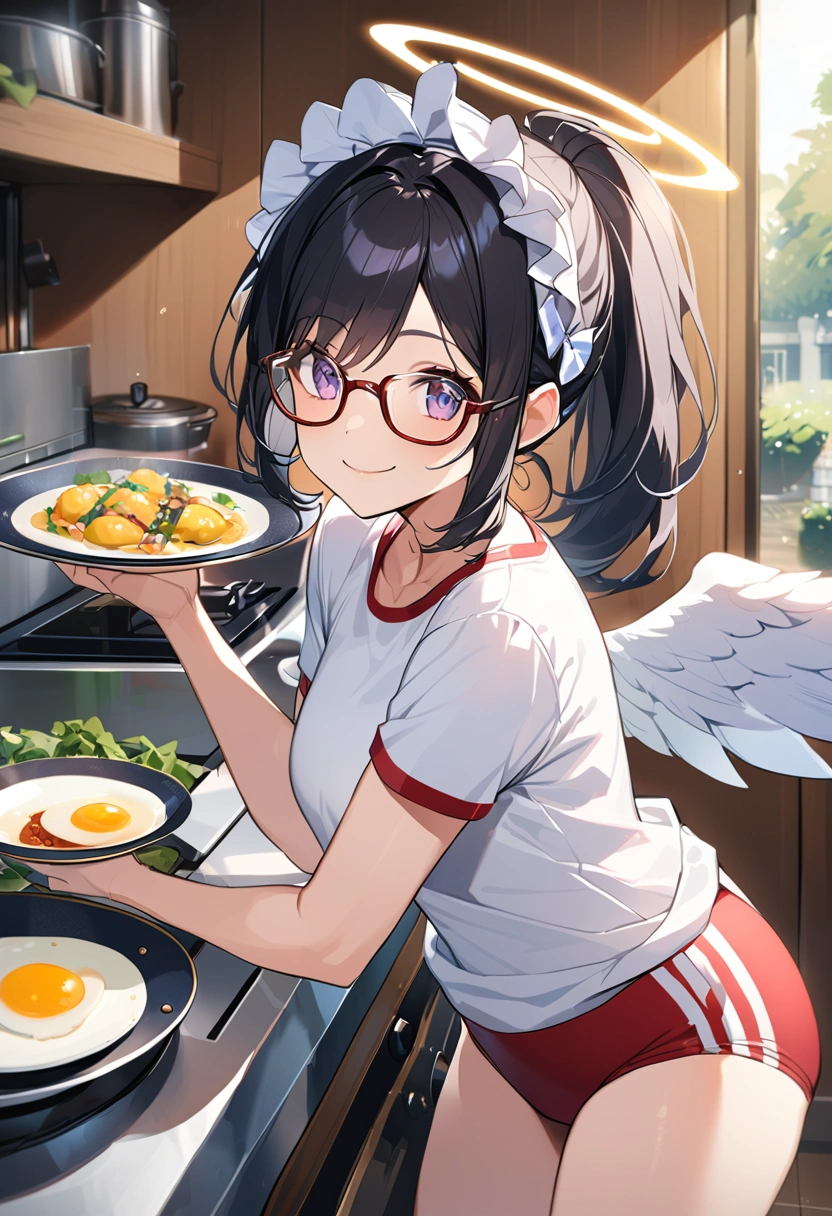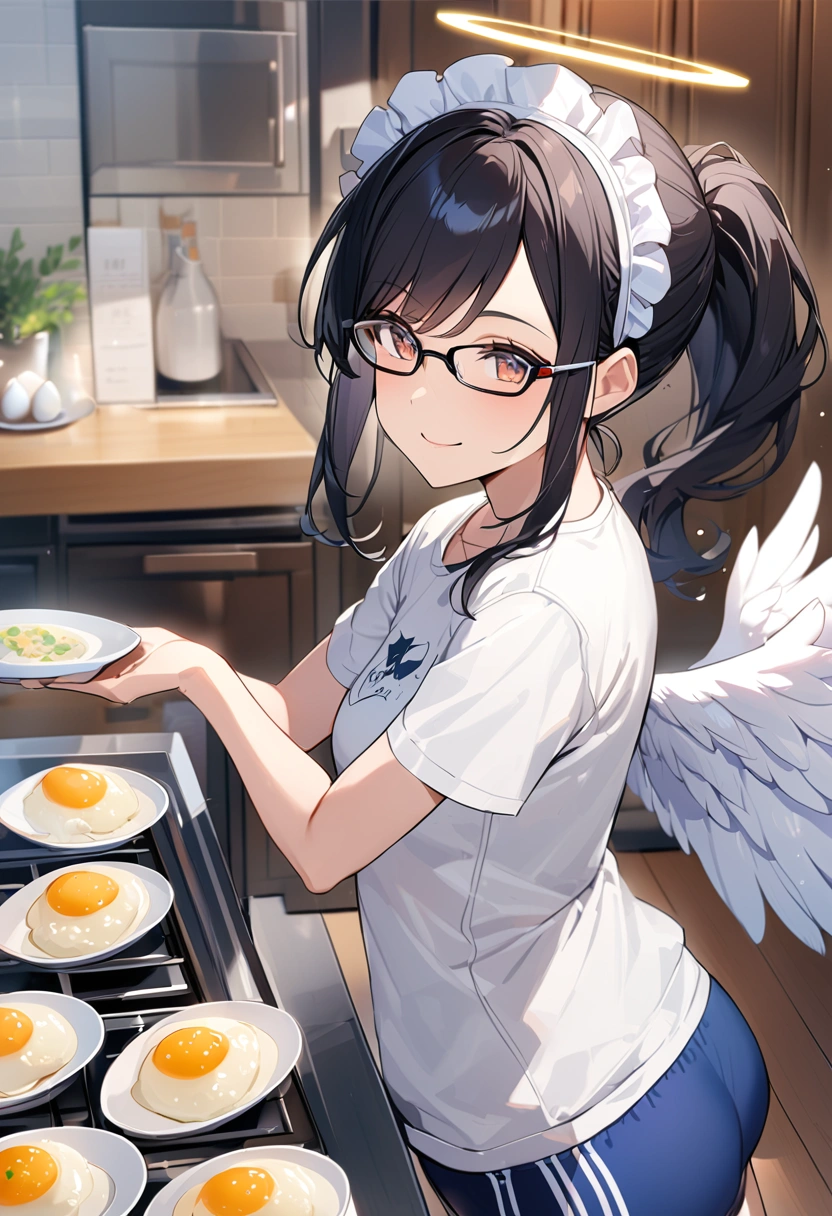 Maid angel cooking in bloomers