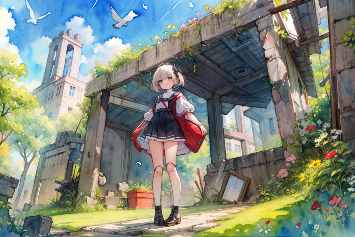 (masterpiece, best quality:1.3), illustration, (extream detailed), one girl, angel Descending