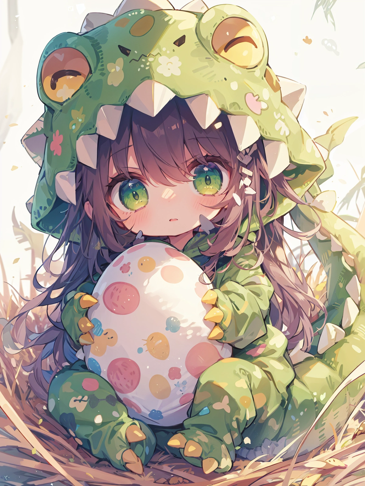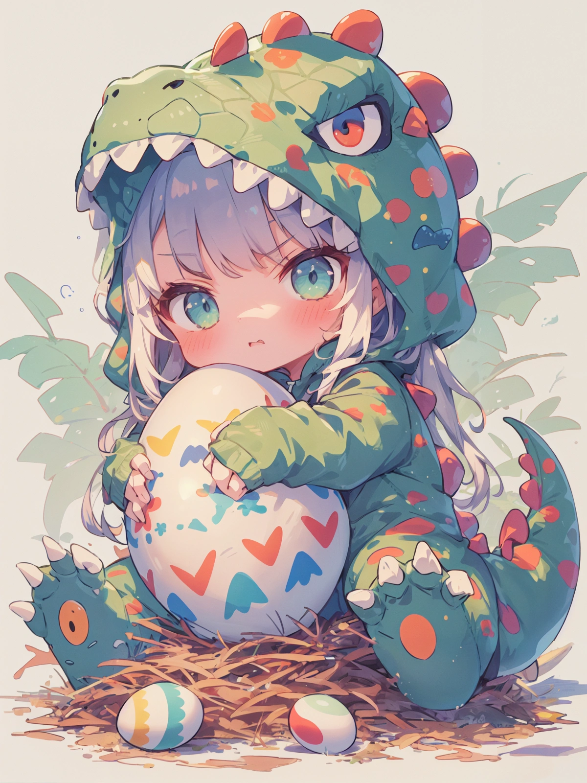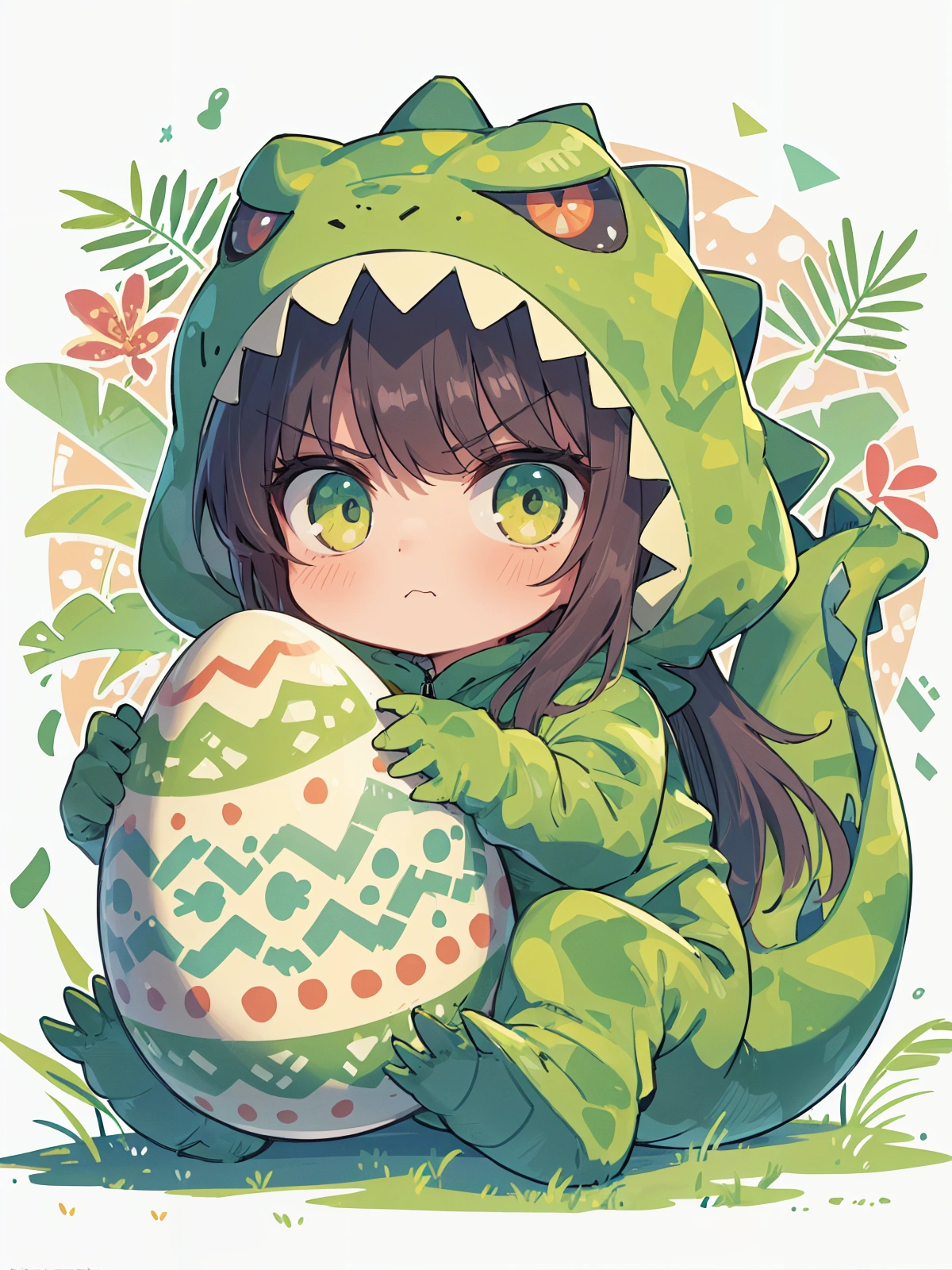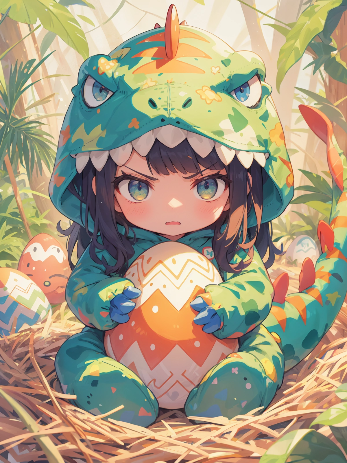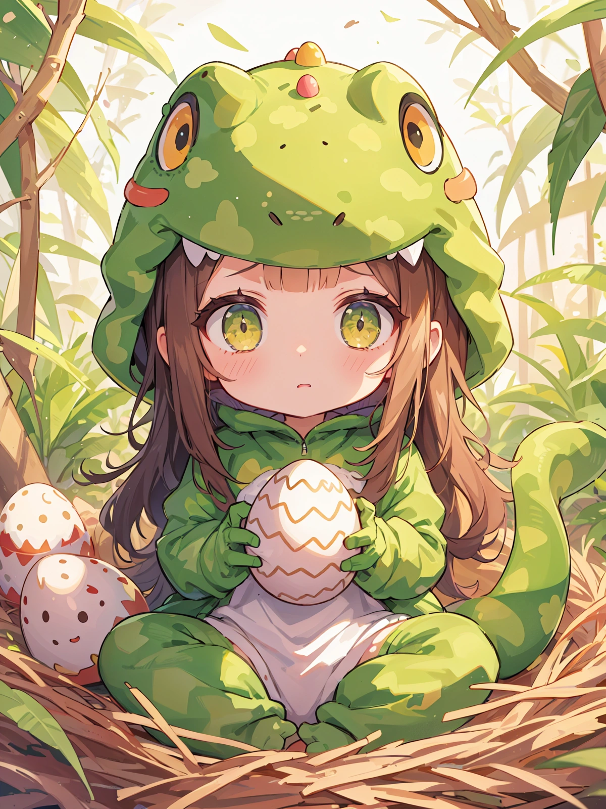 卵を守る恐竜きぐるみ娘