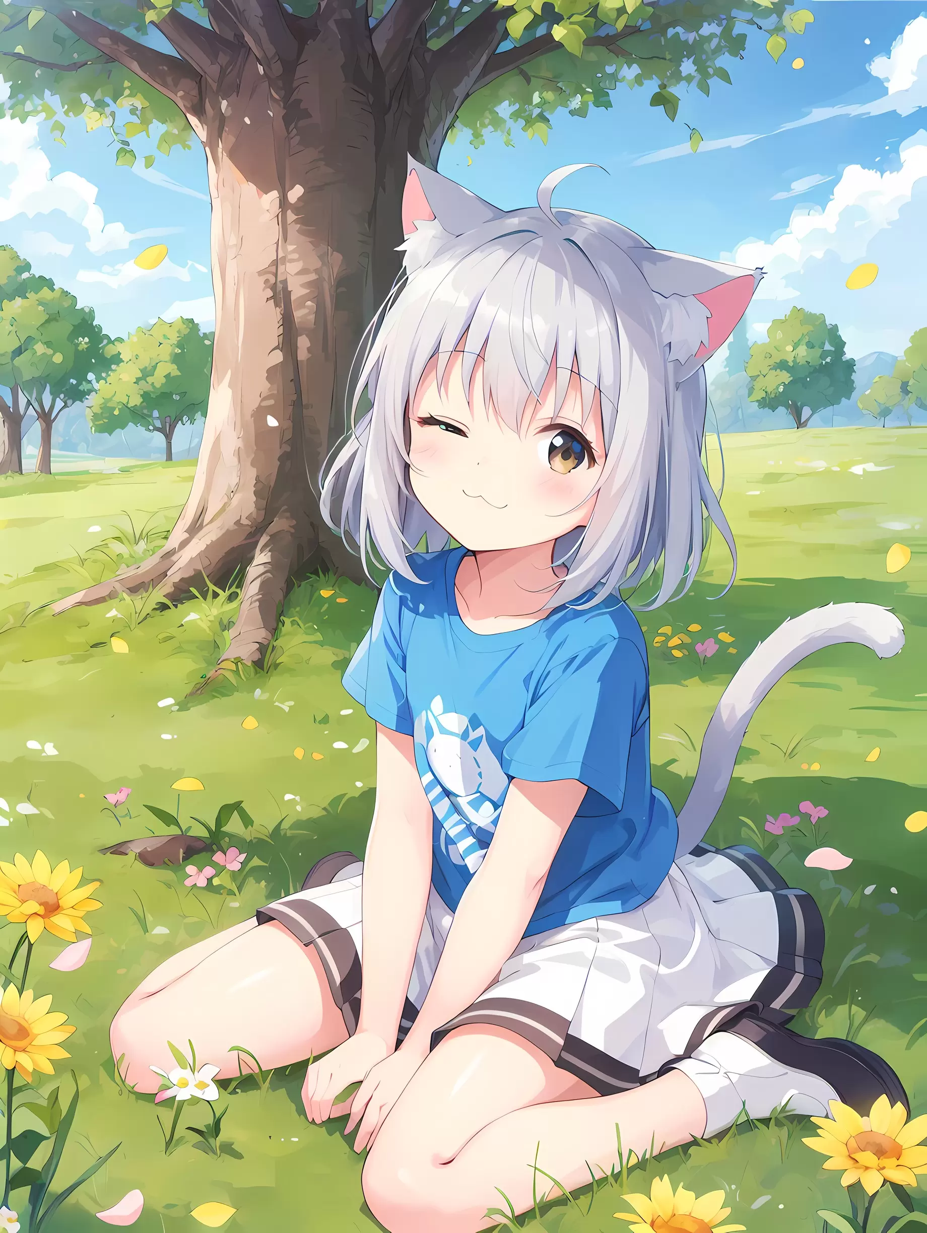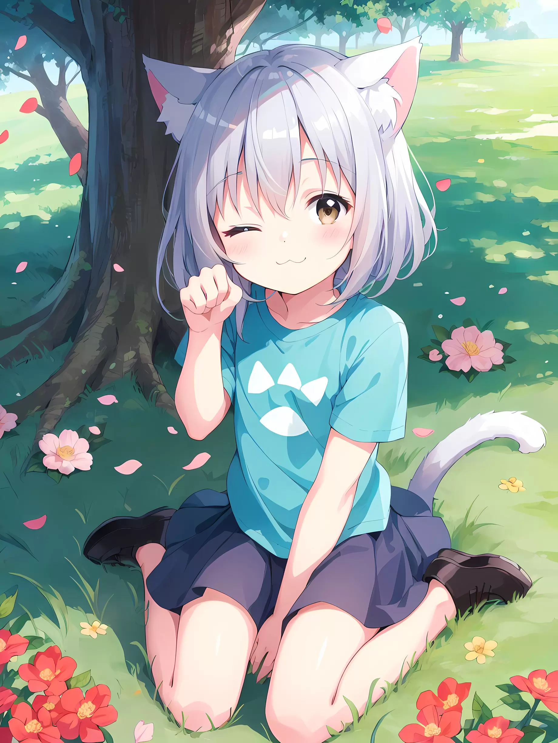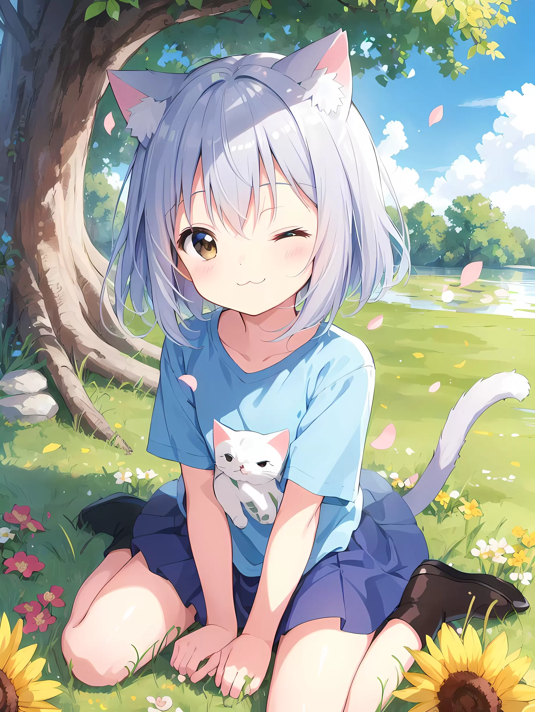 春の陽気と白い猫