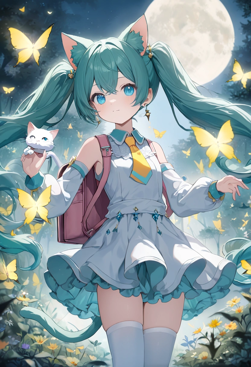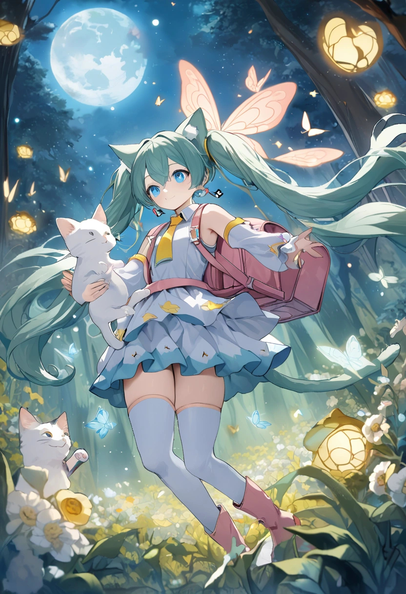 幻想の森 白猫と戯れる少女