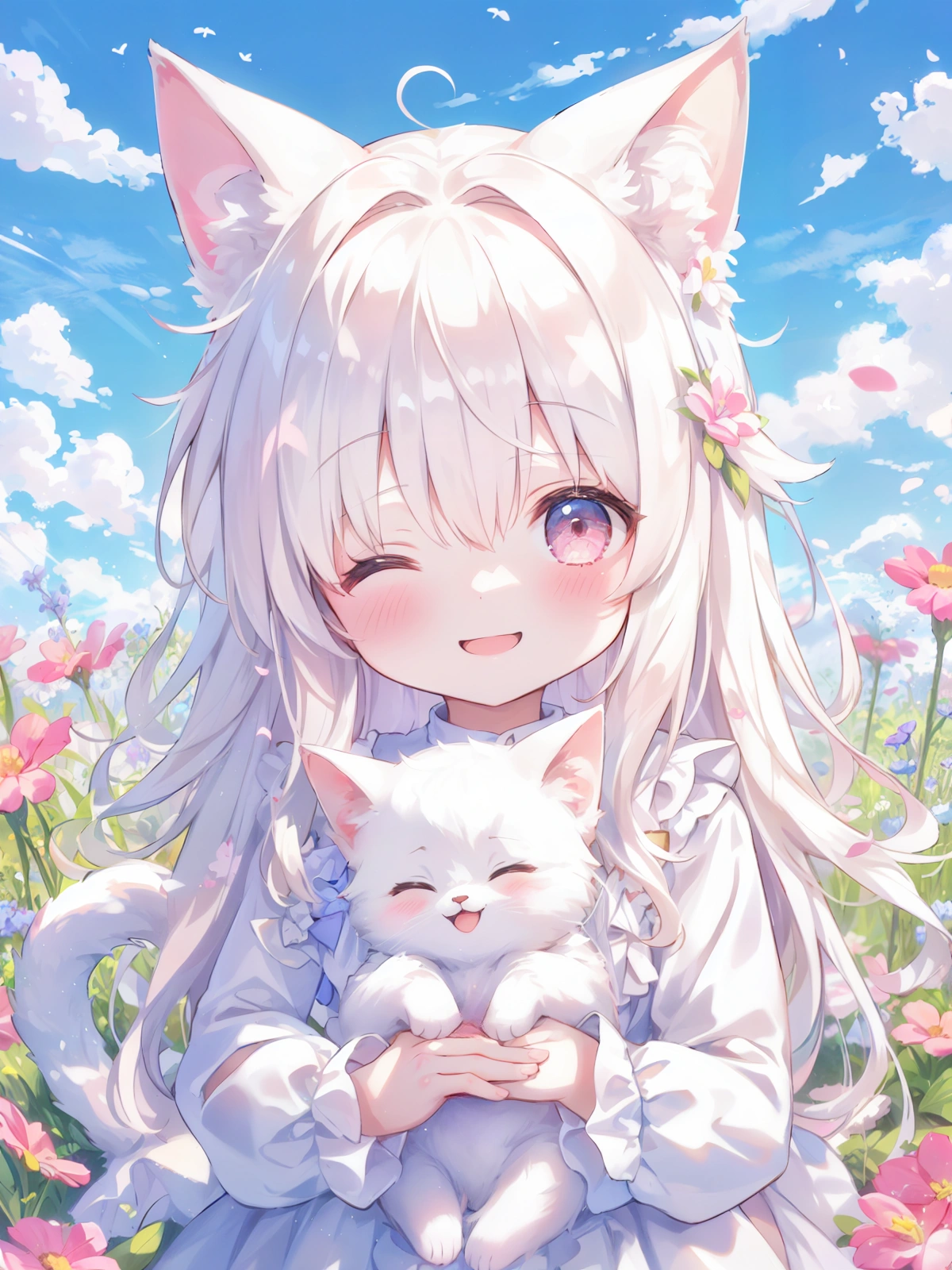 白猫娘と子猫