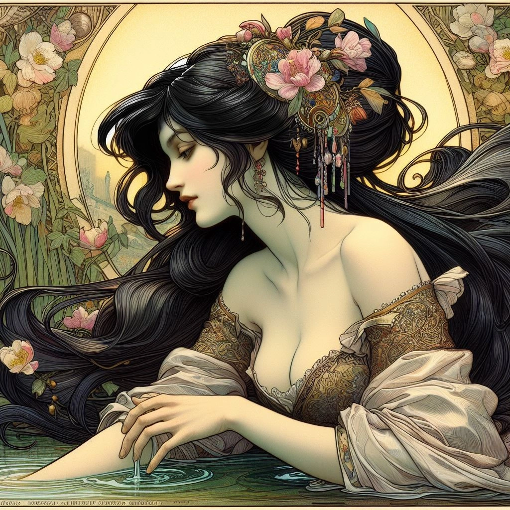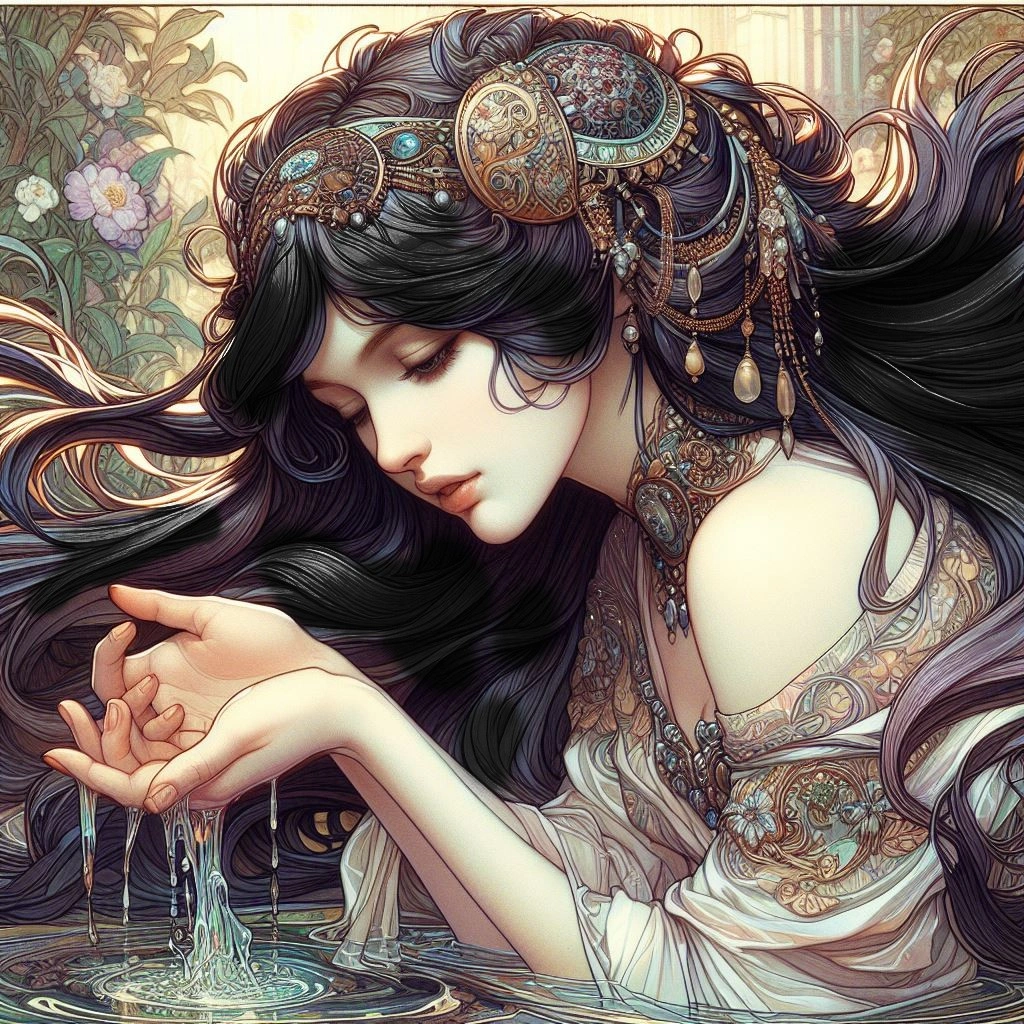 泉に手を浸す女神官どの