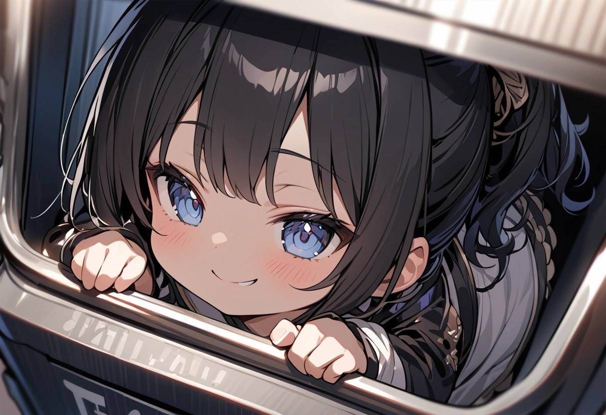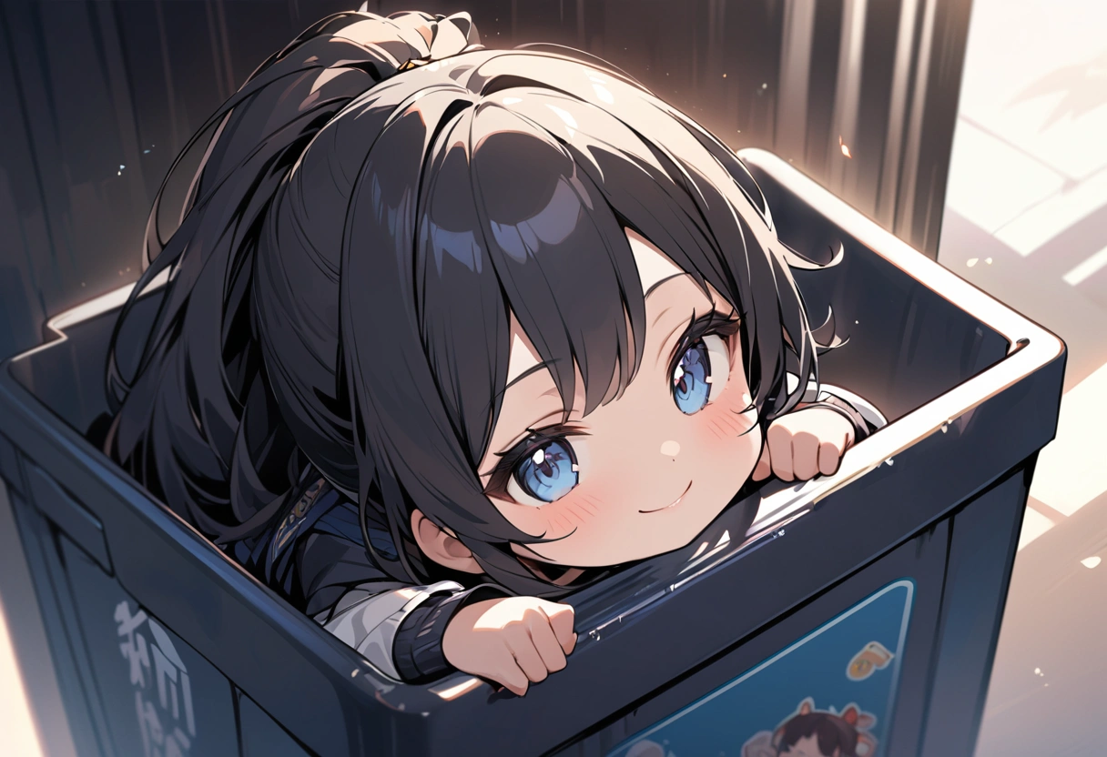 A girl hiding in a trash can and plotting something