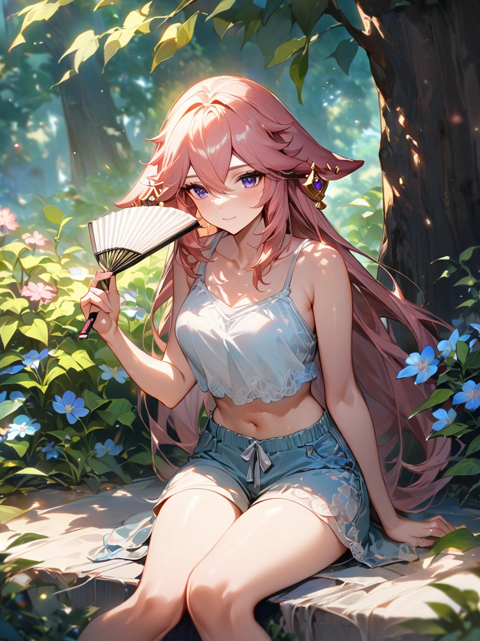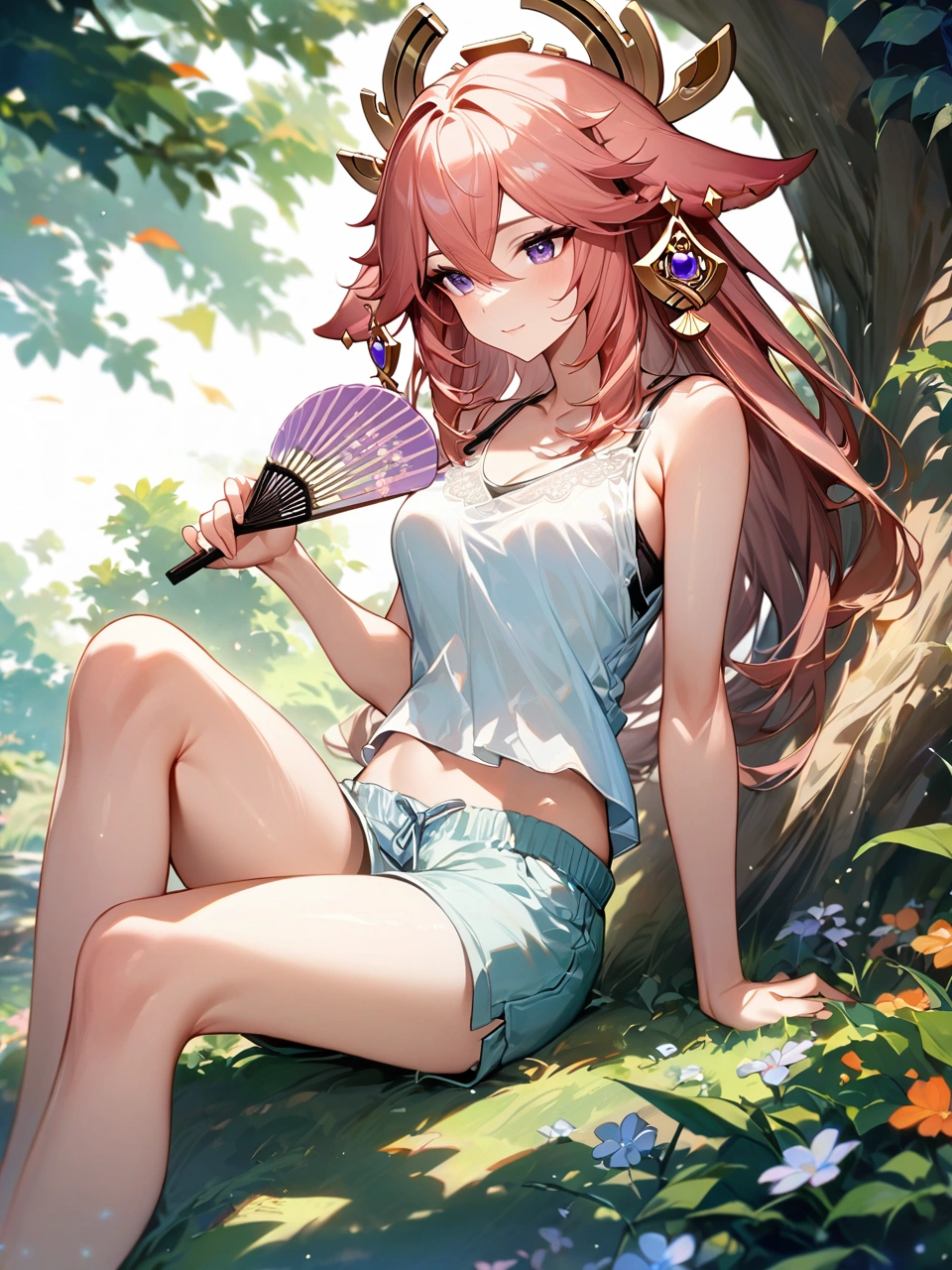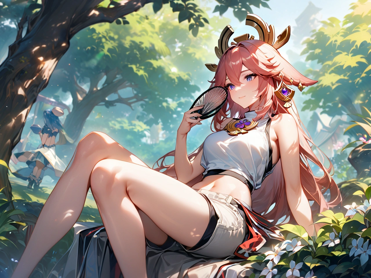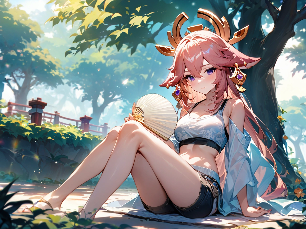 暑い日に木陰で休憩【原神・八重神子】