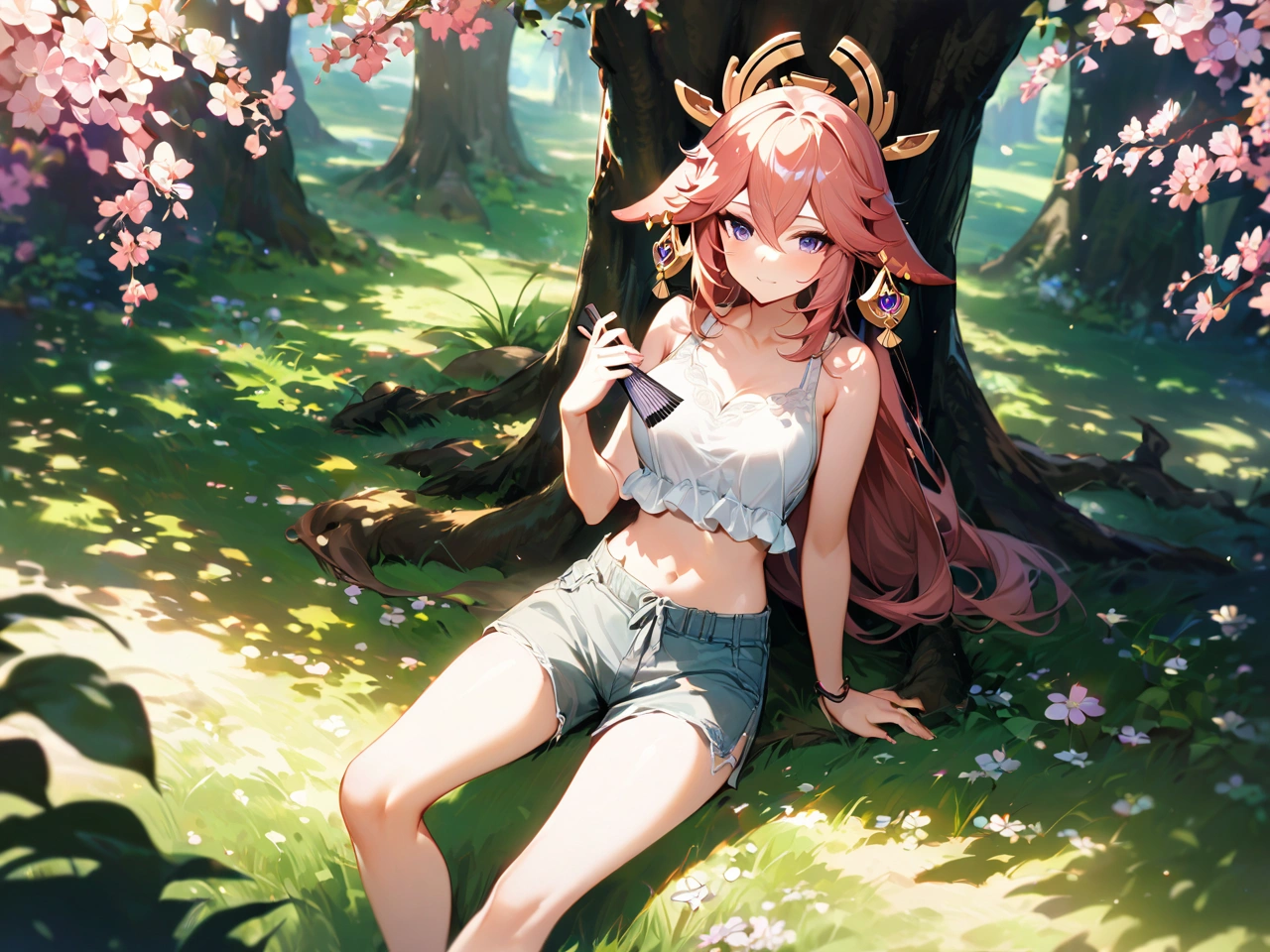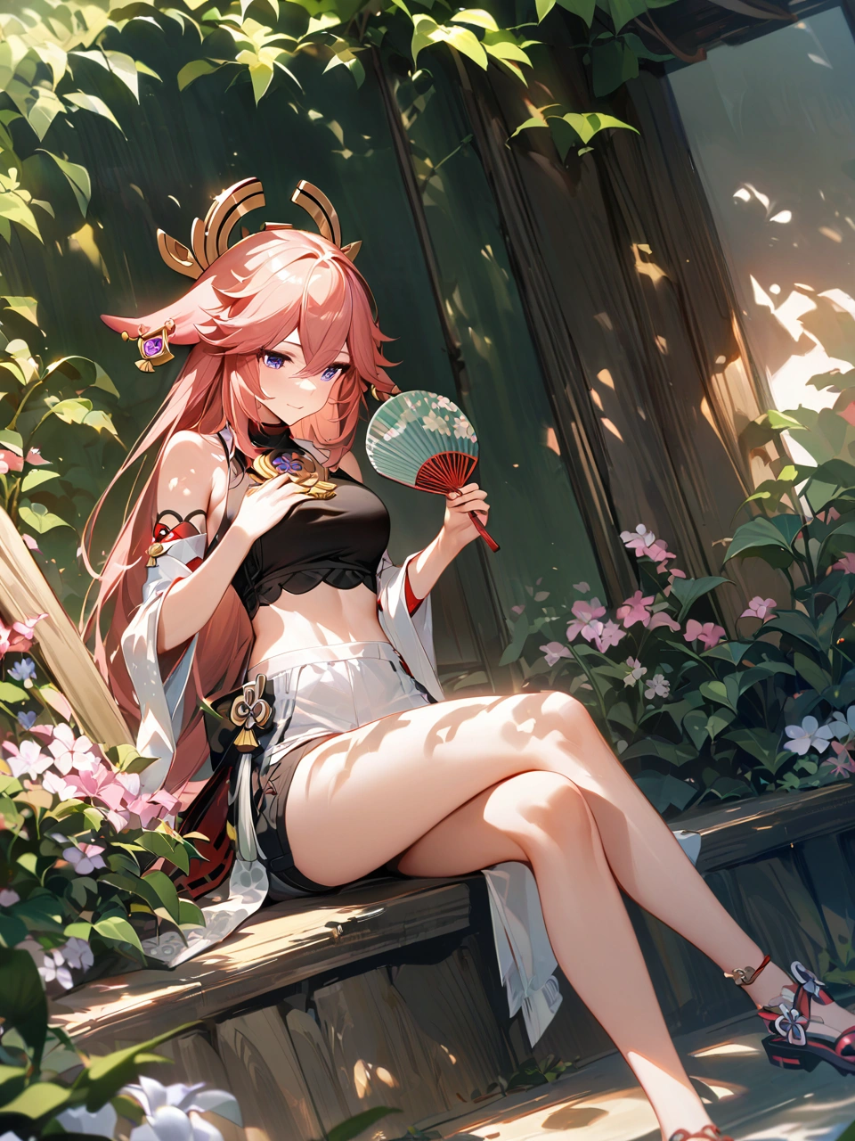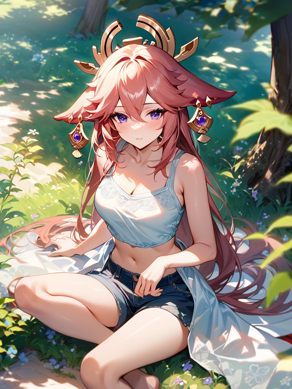 暑い日に木陰で休憩【原神・八重神子】