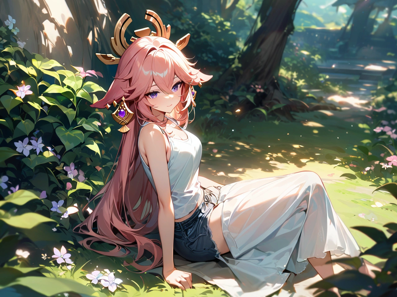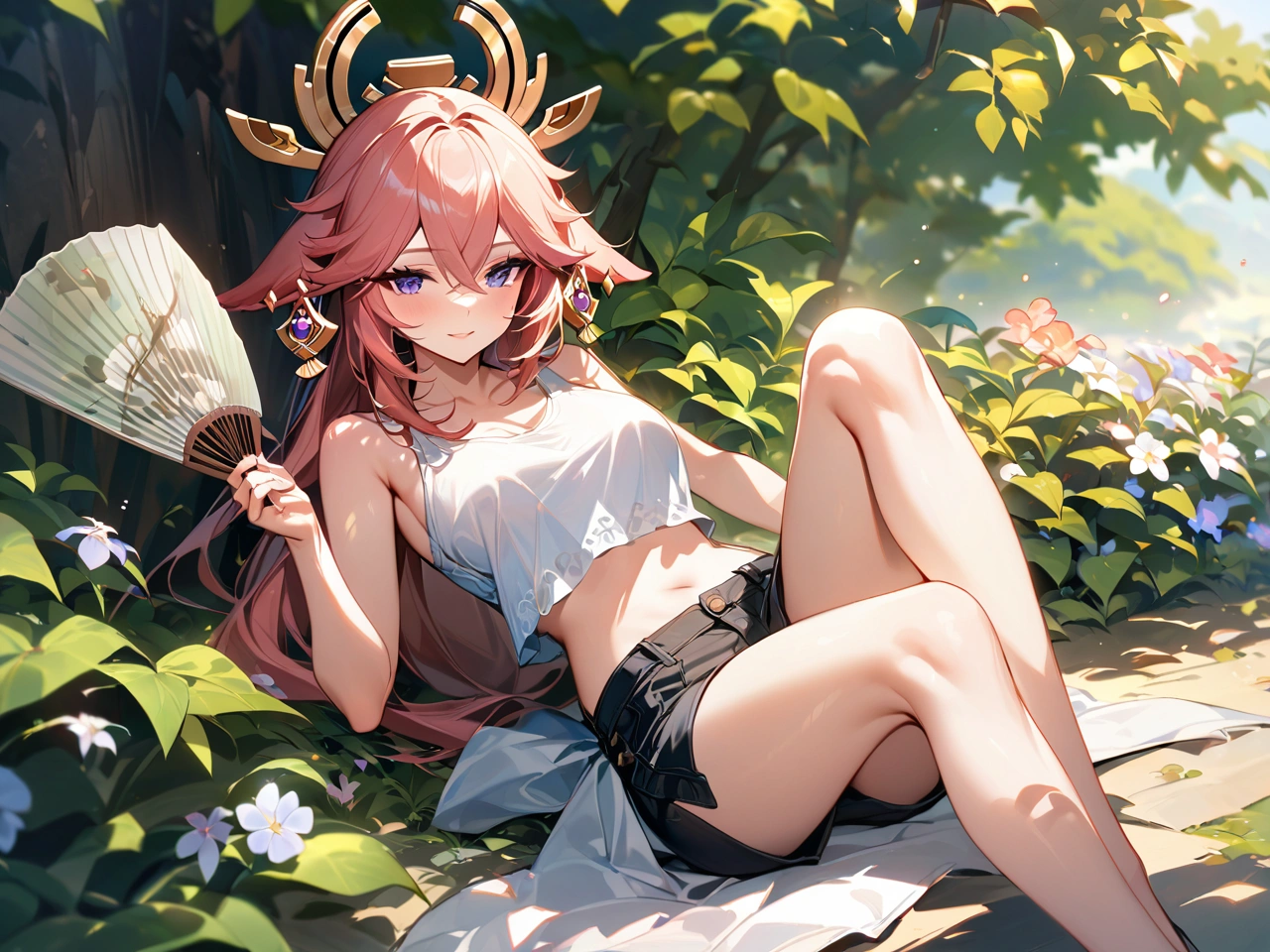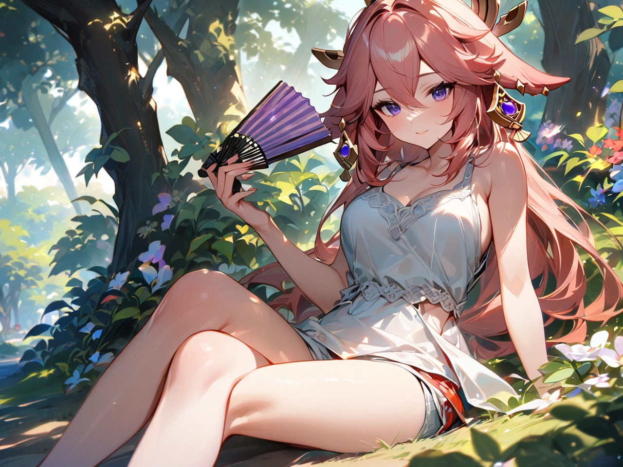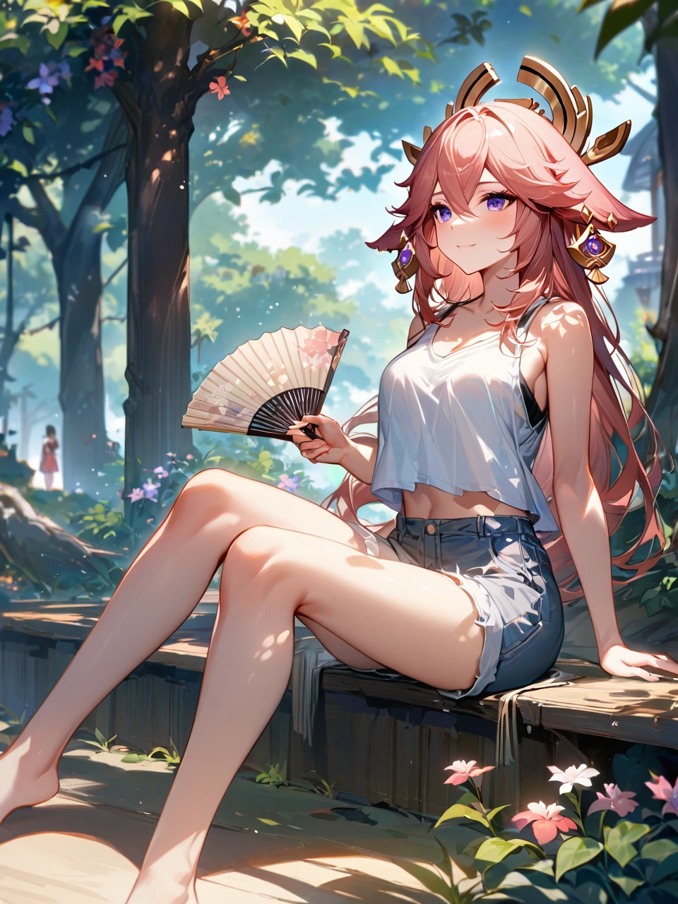 暑い日に木陰で休憩【原神・八重神子】